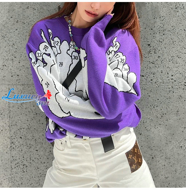 LOUIS VUITTON-1AAHFA 루이비통 퍼플 스튜디오 자카드 크루넥 남여공용