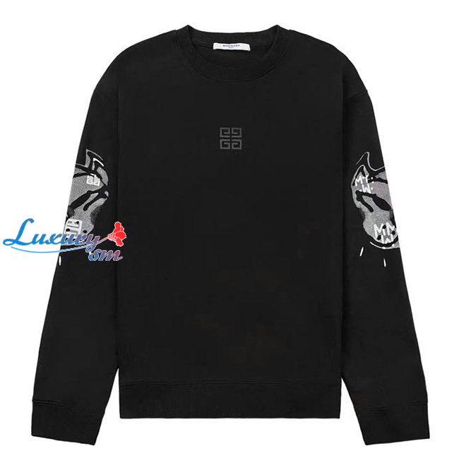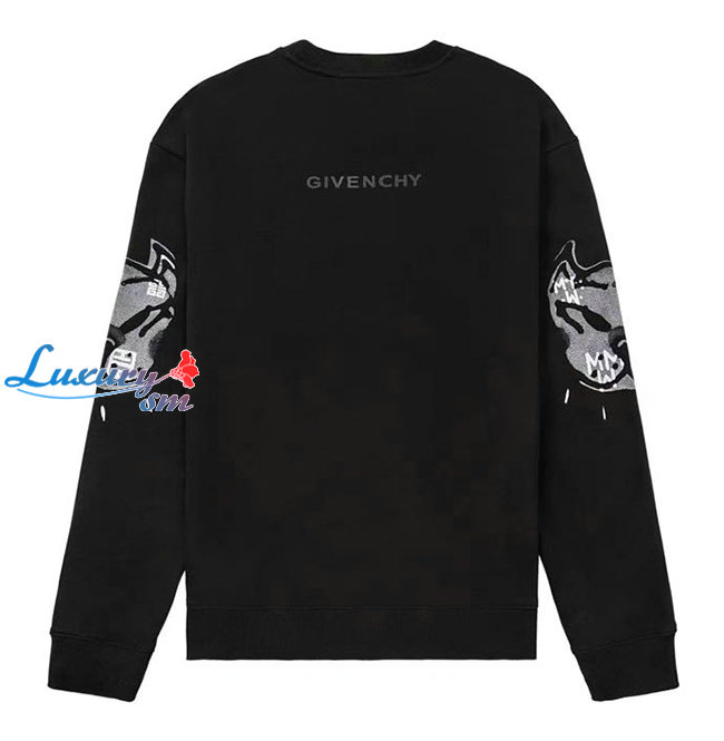 GIVENCHY-09024 지방시 블랙 도그 프린트 장식 스웨트셔츠 남여공용