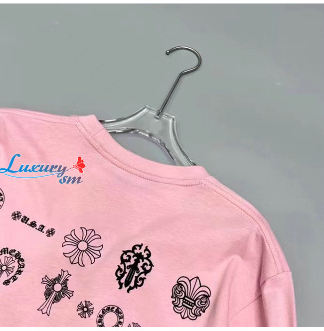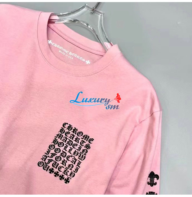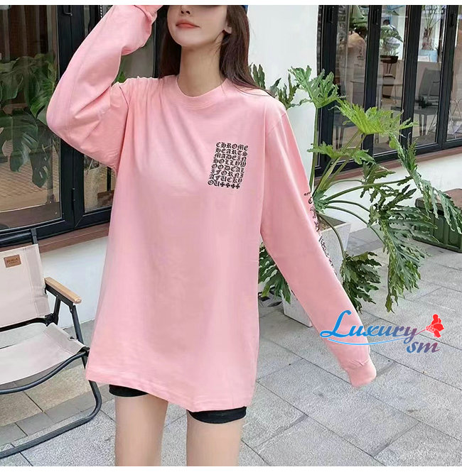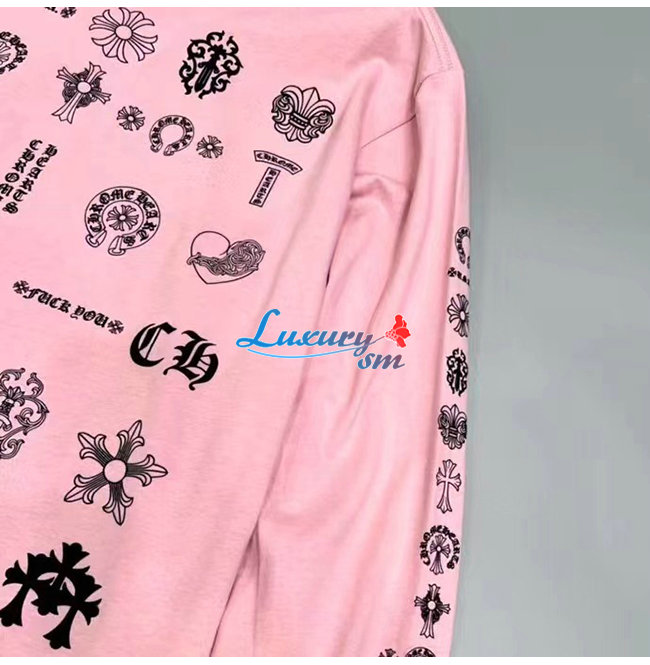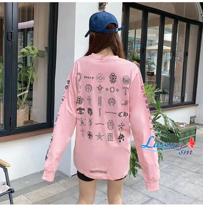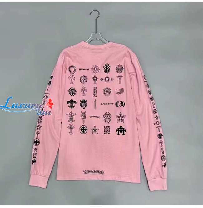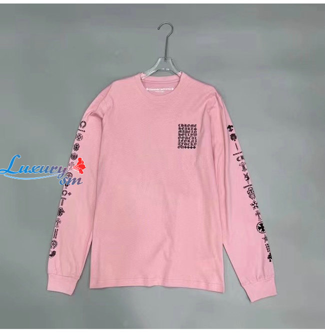 CHROMEHEARTS-09146 크롬하츠 핑크 프린트 장식 긴팔 티셔츠 남여공용