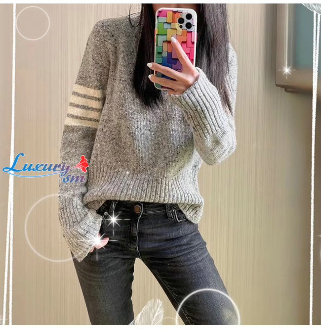 THOM BROWNE-09289 톰 브라운 그레이 스트라이프 장식 스웨터 남여공용