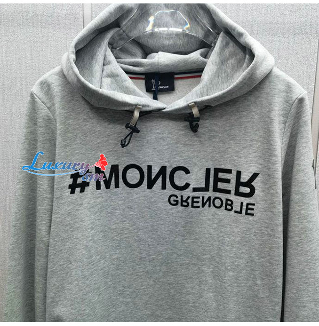 MONCLER-09292 몽클레어 그레이 프린트 장식 후드 티셔츠 남성용