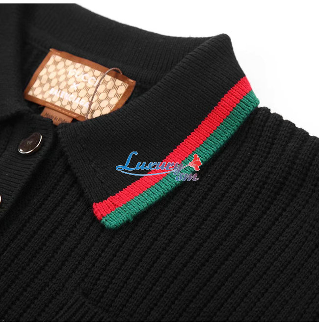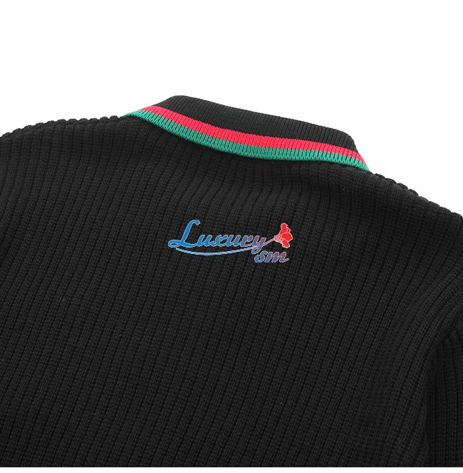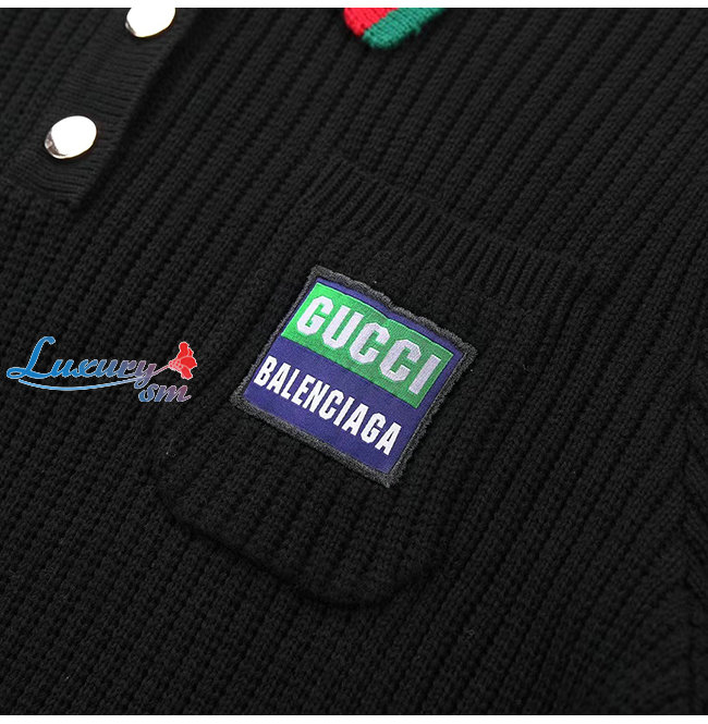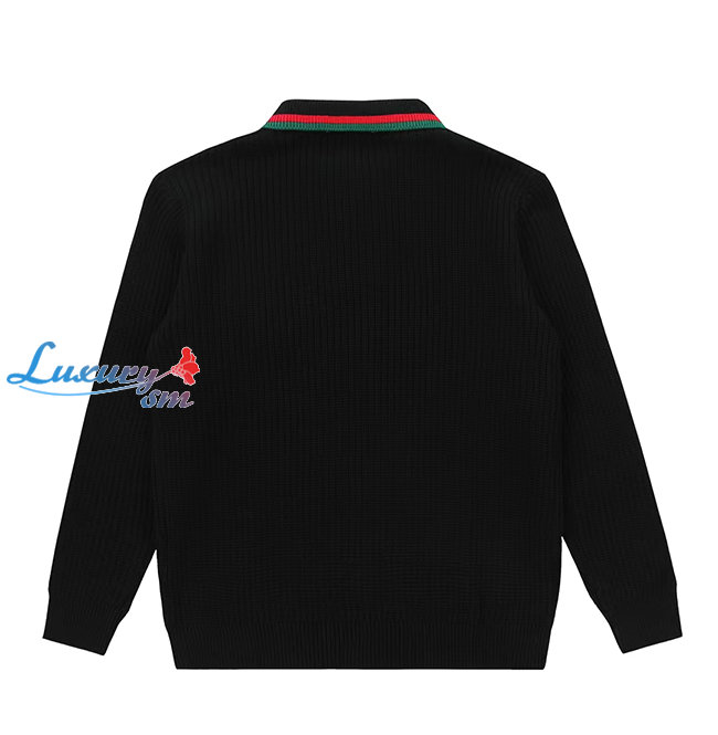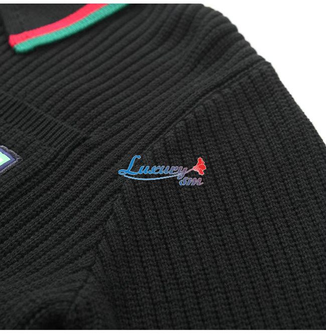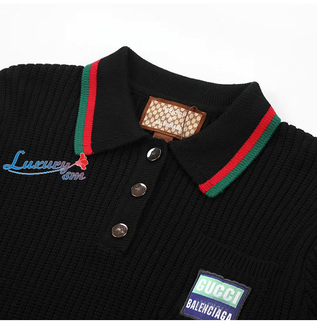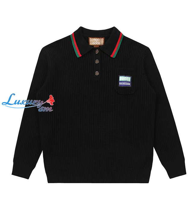 GUCCI-11154 구찌 블랙 구찌 X 발렌시아가 콜라보 Web 스트라이프 장식 폴로 스웨터 남여공용