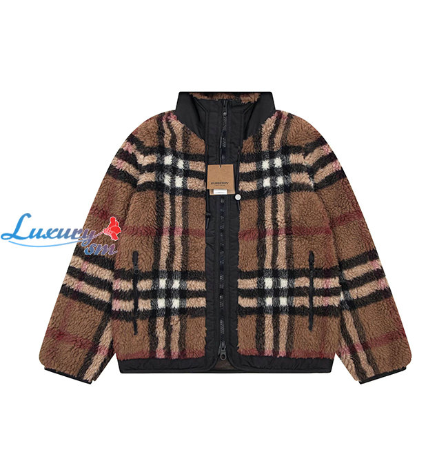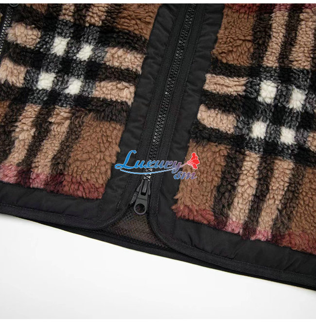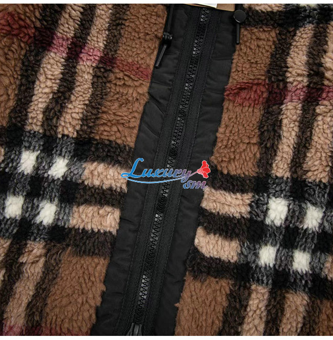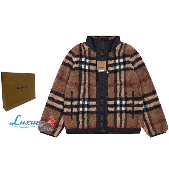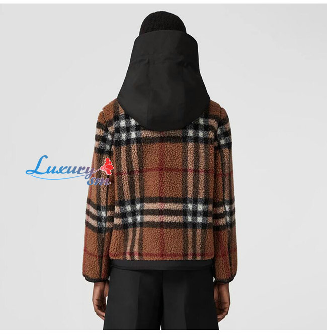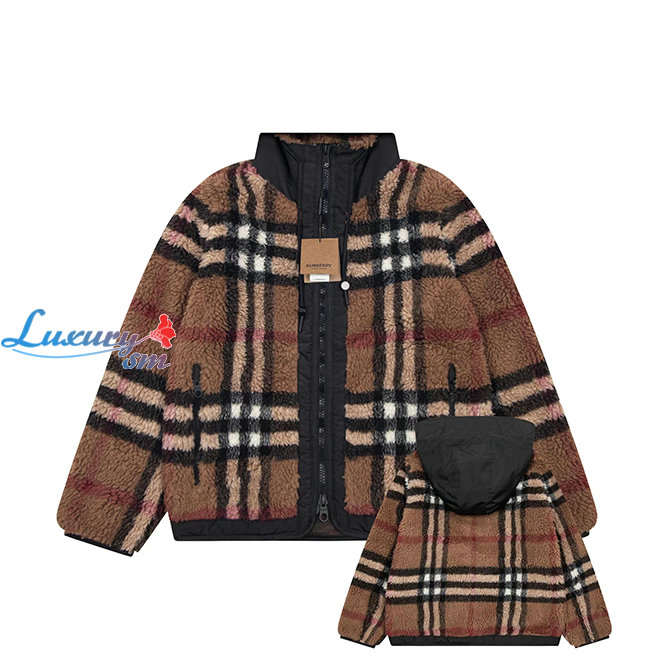BURBERRY-80586391 버버리 브라운 이그재저레이트 체크 플리스 후드 재킷 남여공용