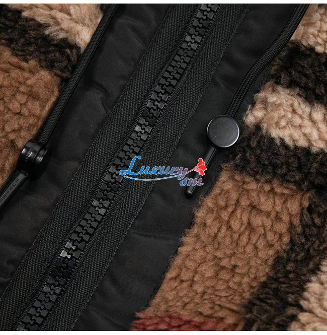 과장된 버버리 체크 패턴이 돋보이며,레이어