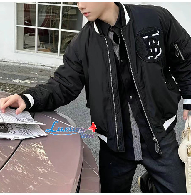 BURBERRY-12238 버버리 블랙 TB 로고 아플리케 장식 베이스볼 재킷 남성용