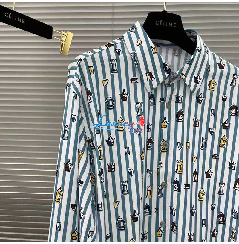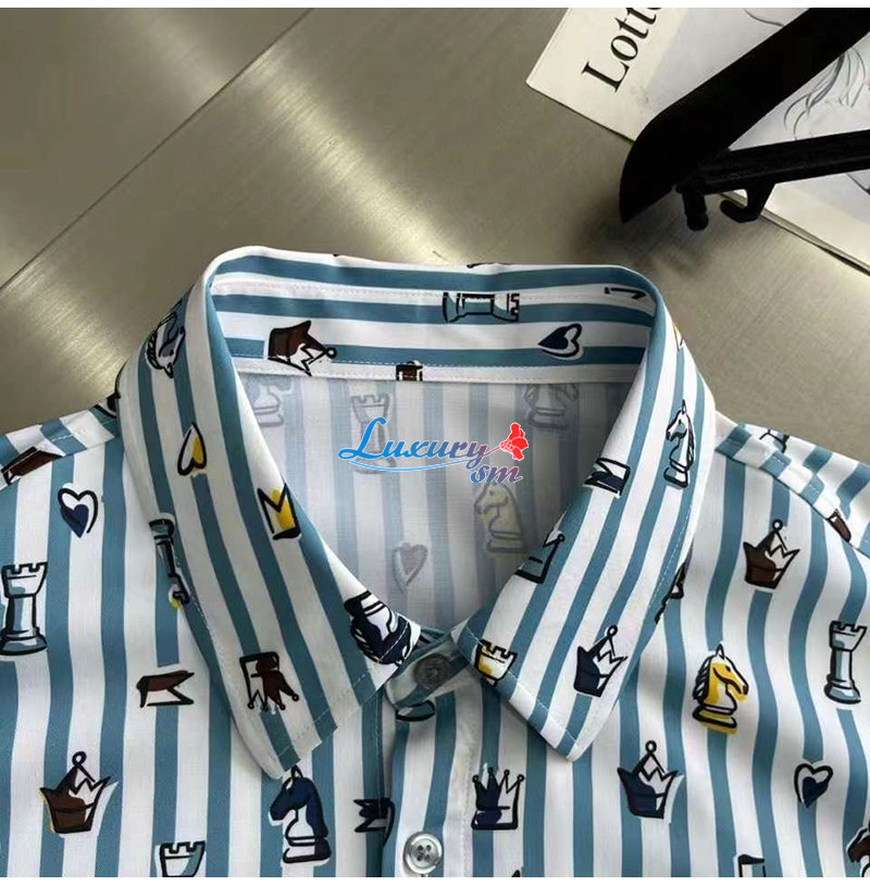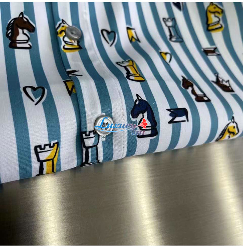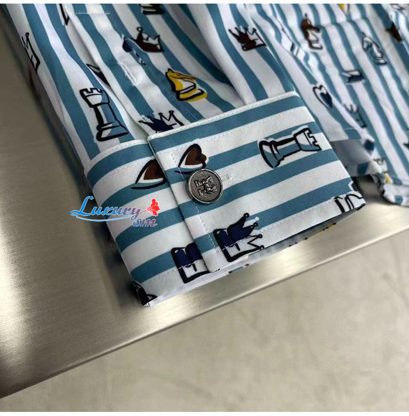 [스페셜오더]HERMES-02127 에르메스 화이트/블루 스트라이프 장식 셔츠 남성용