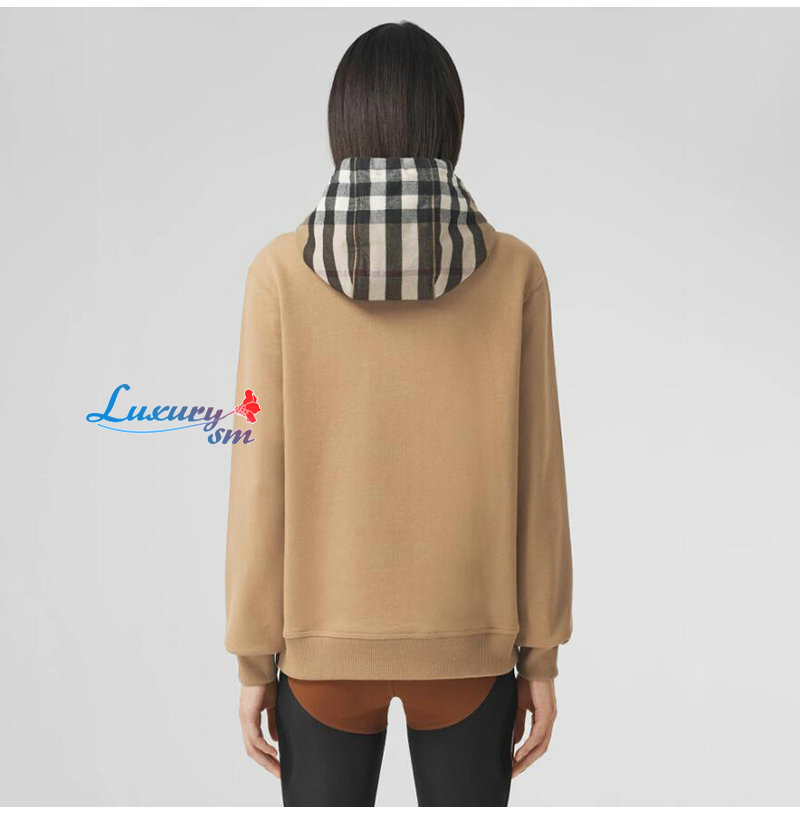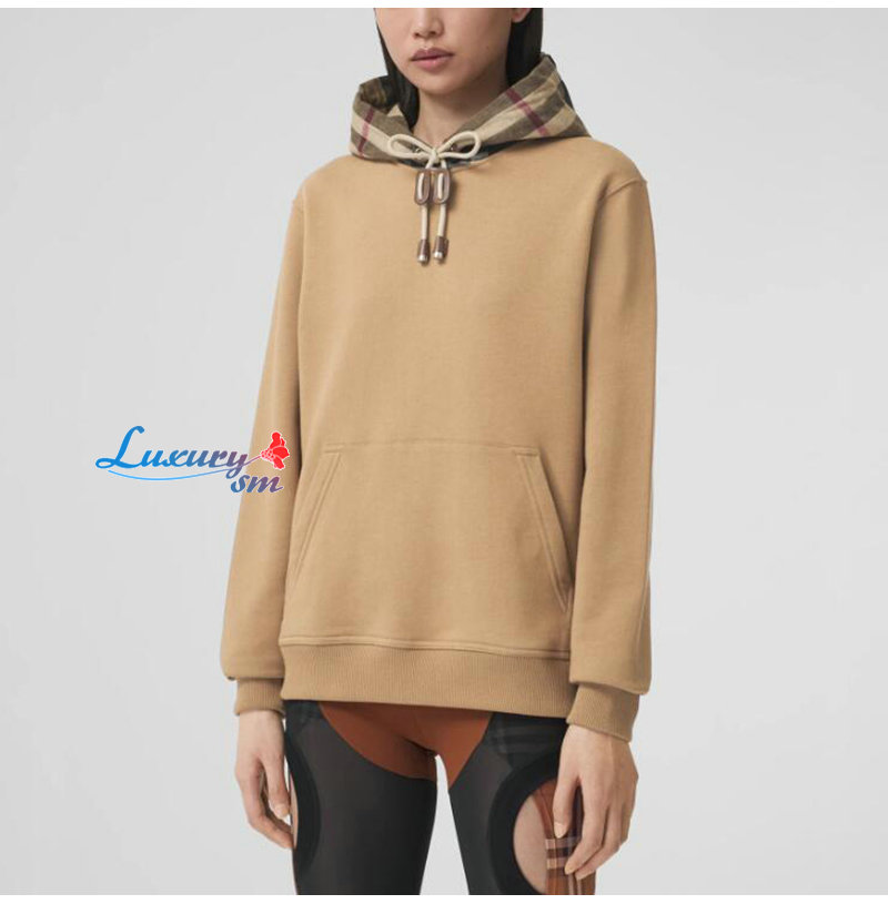BURBERRY-80577281 버버리 카멜 체크 후드 코튼 오버사이즈 후디 남여공용