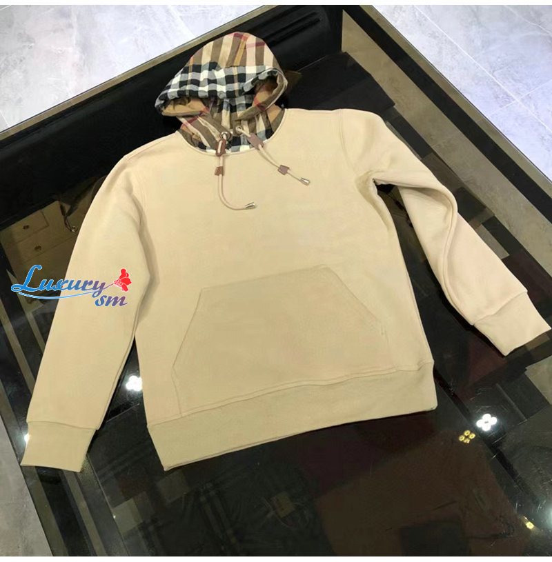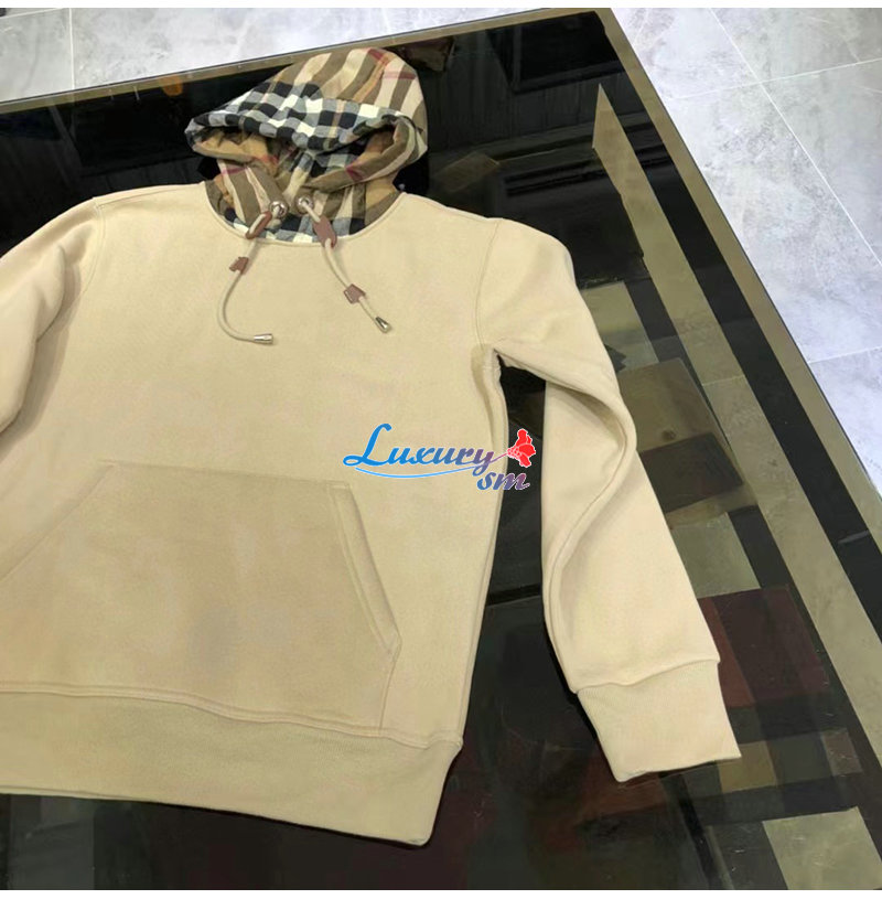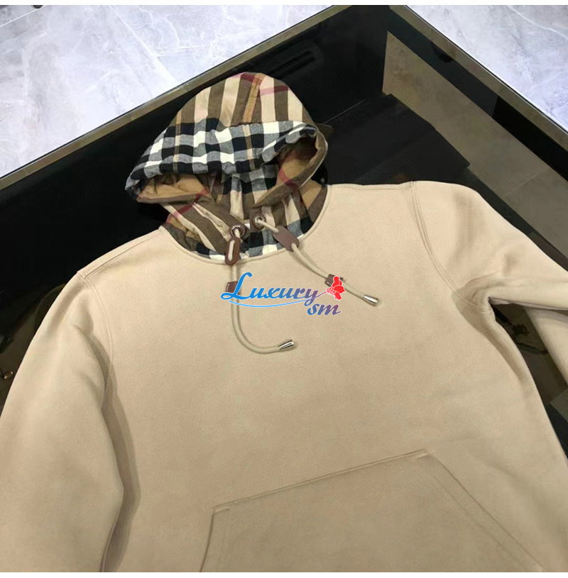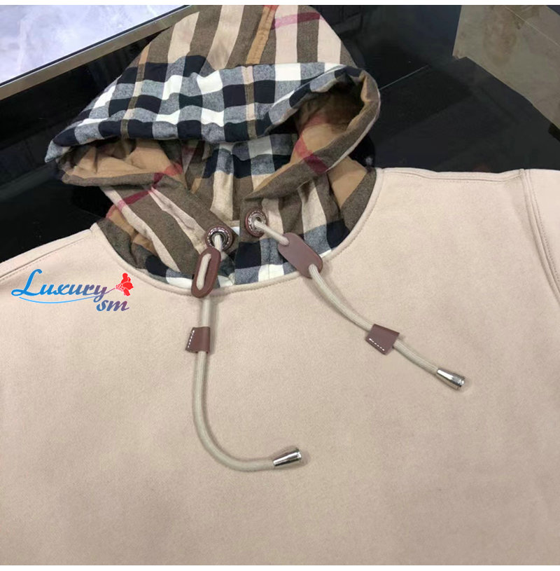 BURBERRY-80577281 버버리 베이지 체크 후드 코튼 오버사이즈 후디 남여공용
