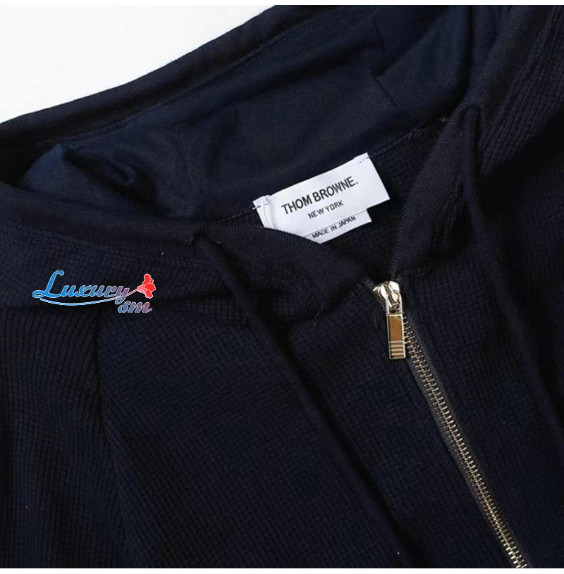 THOM BROWNE-03016 톰 브라운 네이비 스트라이프 장식 후드 재킷 남여공용