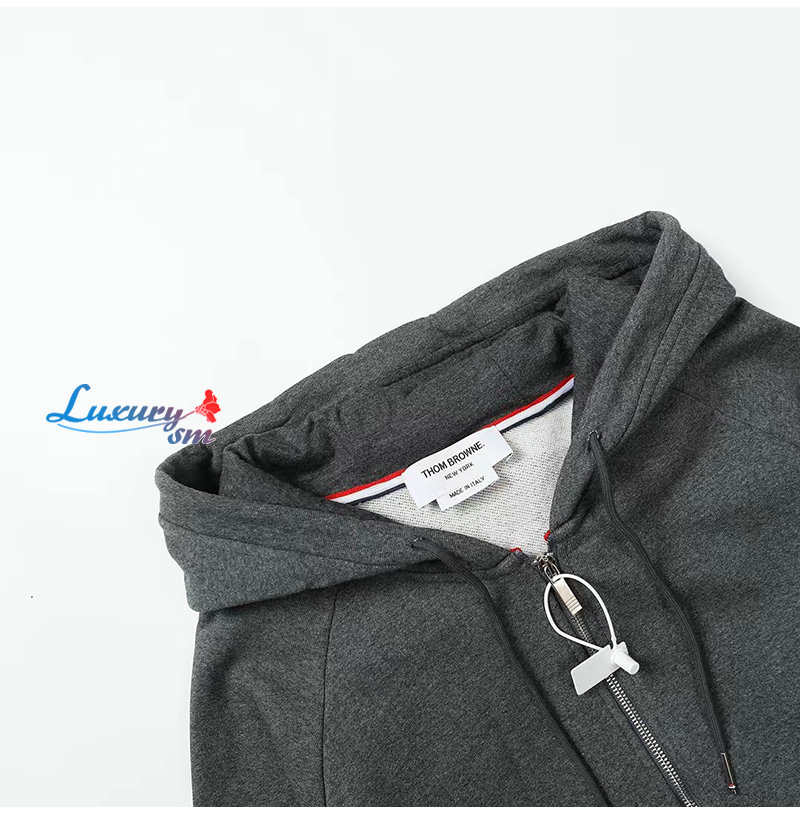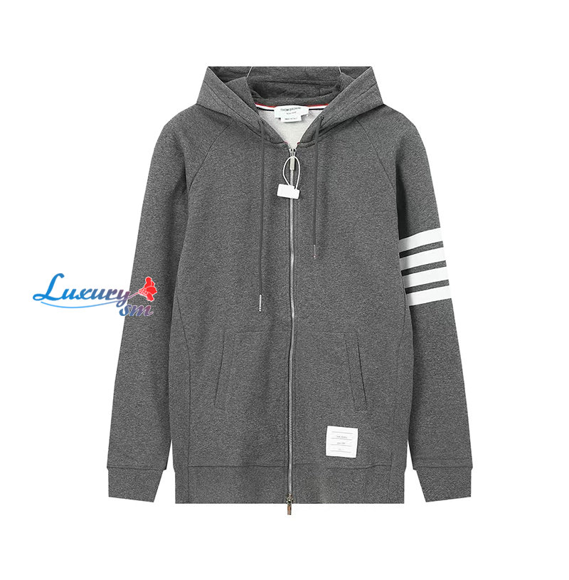 THOM BROWNE-03018 톰 브라운 라이트 그레이 스트라이프 장식 후드 재킷 남여공용
