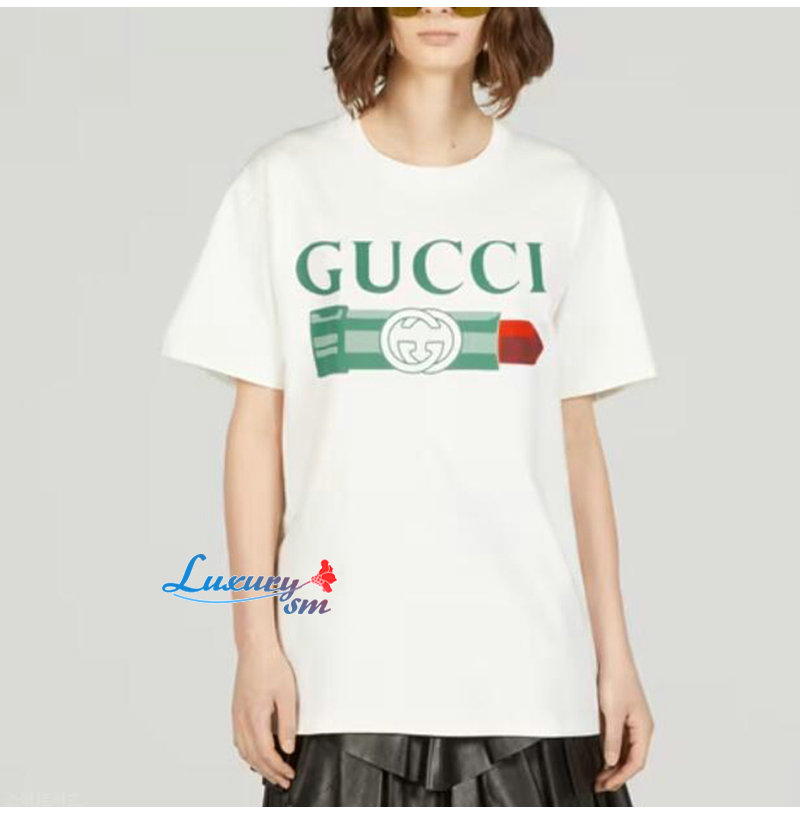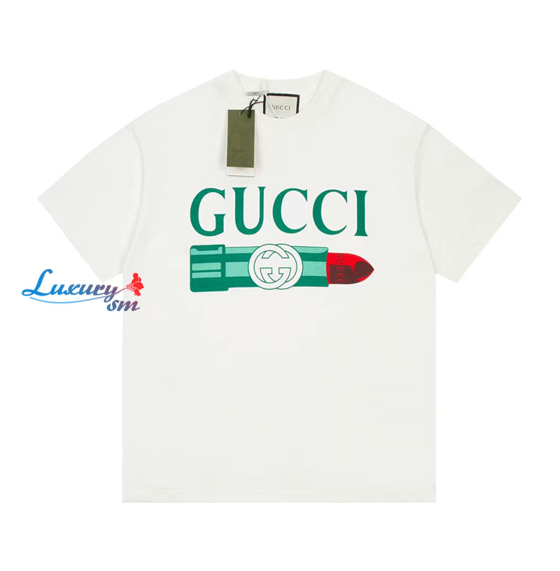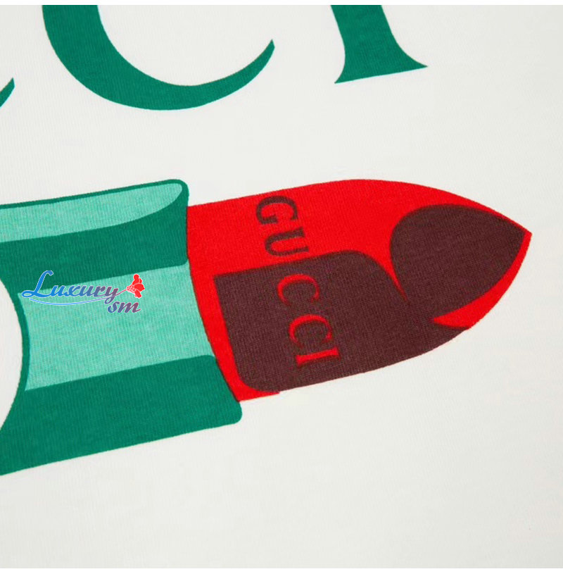 GUCCI-717422 9095 구찌 화이트 립스틱 프린트 코튼 티셔츠 남여공용