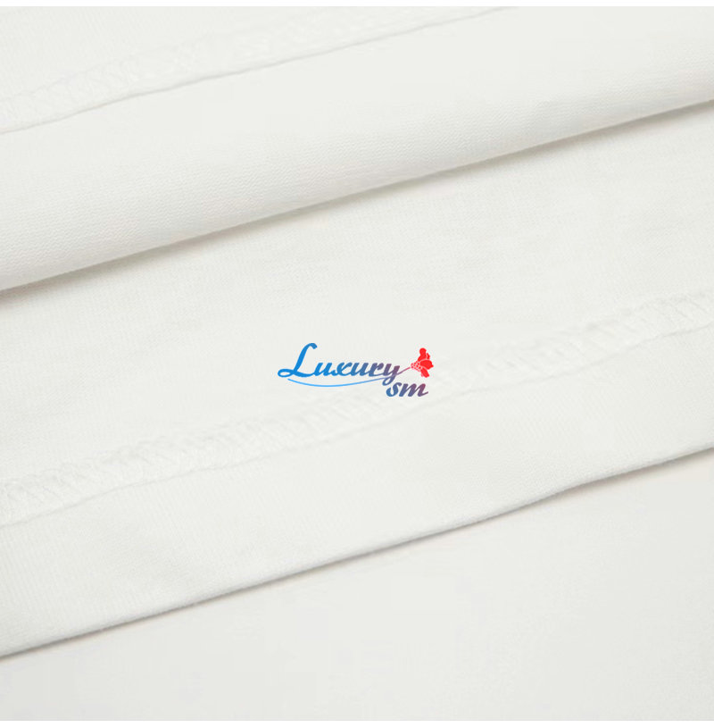 장식한 화이트 코튼 저지 티셔츠를 선보임.