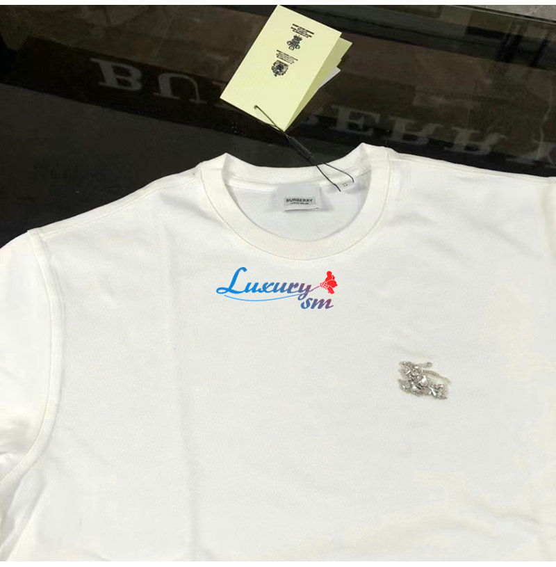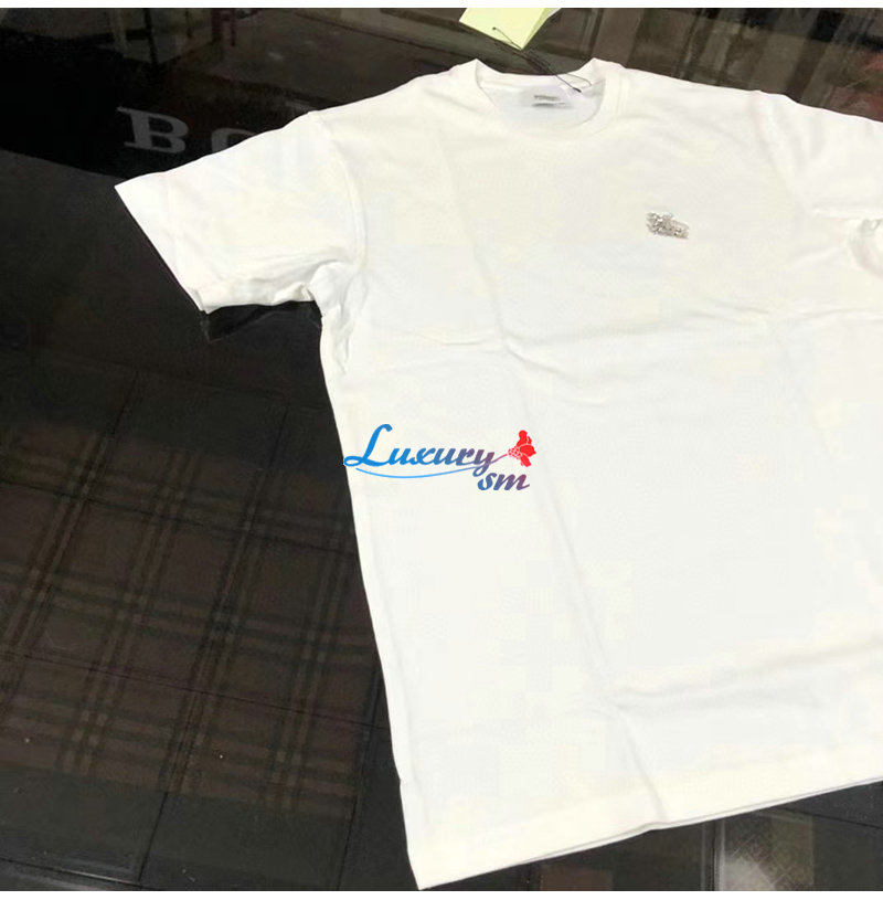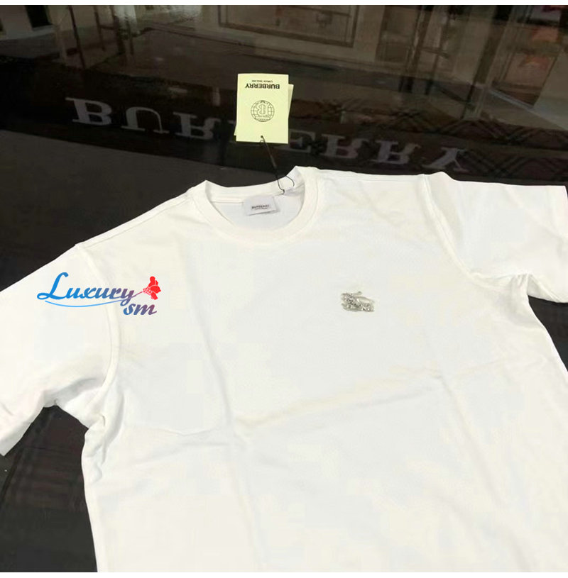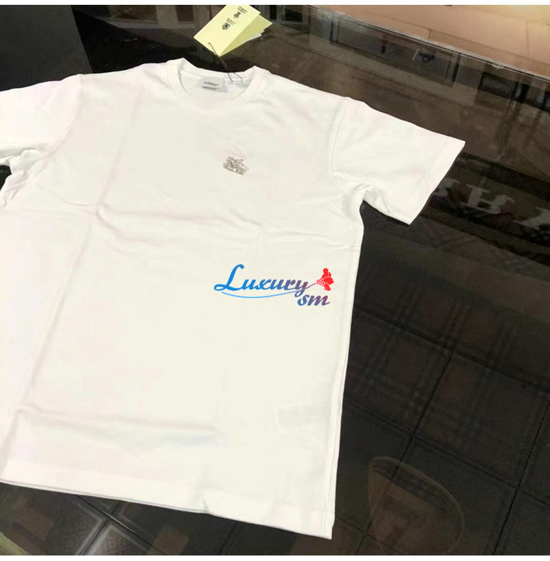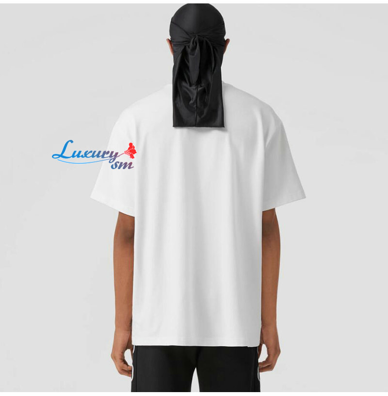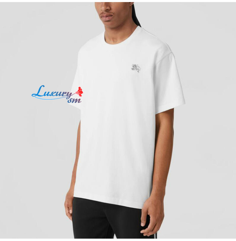 BURBERRY-80643931 버버리 화이트 크리스털 EKD 코튼 저지 티셔츠 남성용