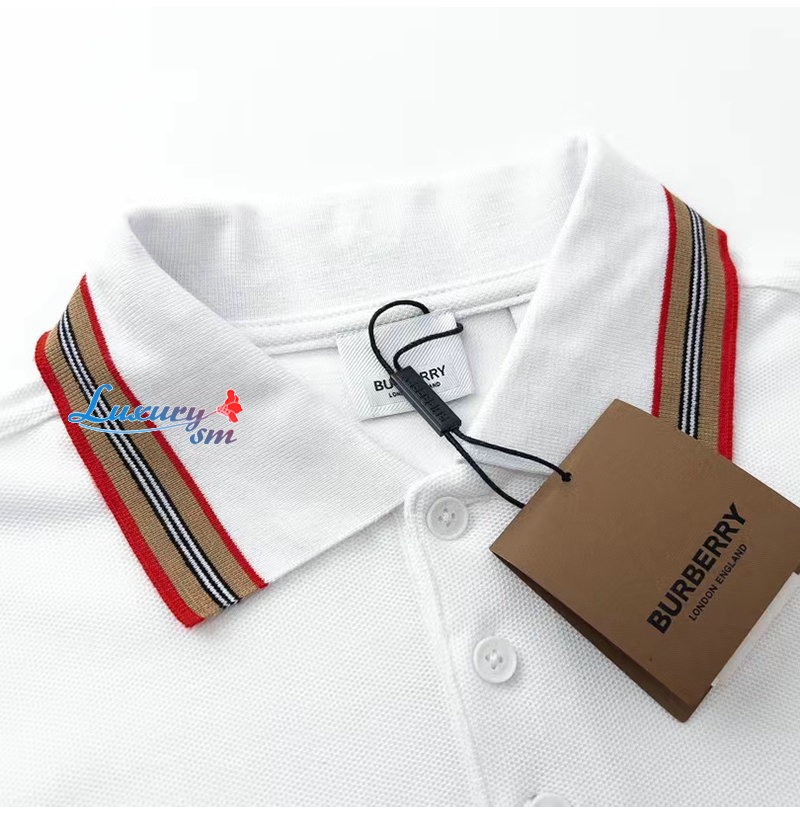 BURBERRY-05109 버버리 화이트 TB 로고 디테일 폴로 티셔츠 남성용
