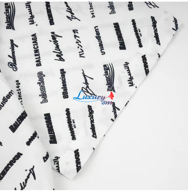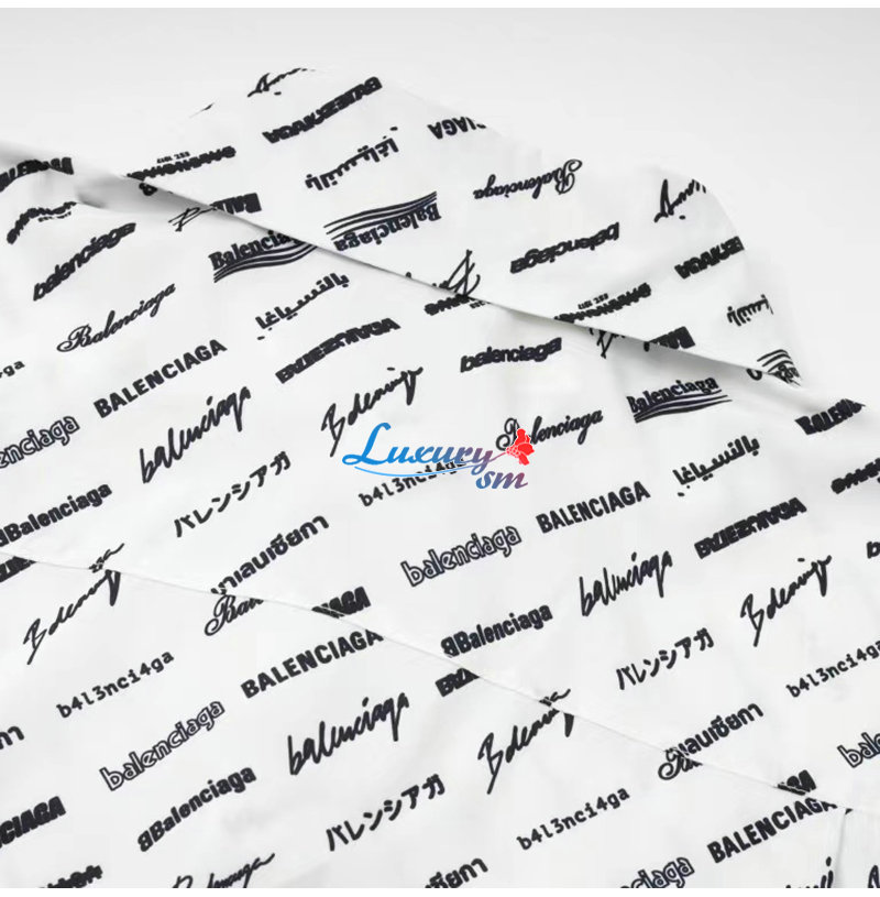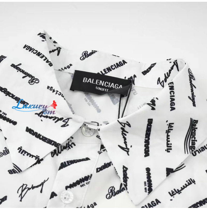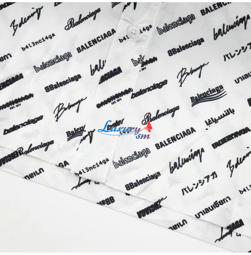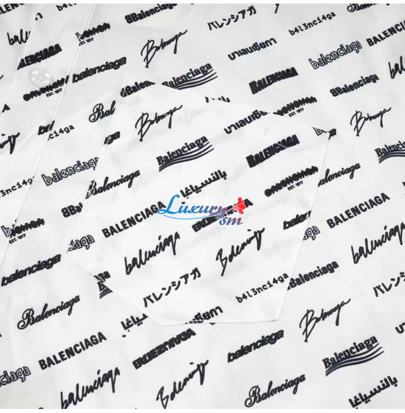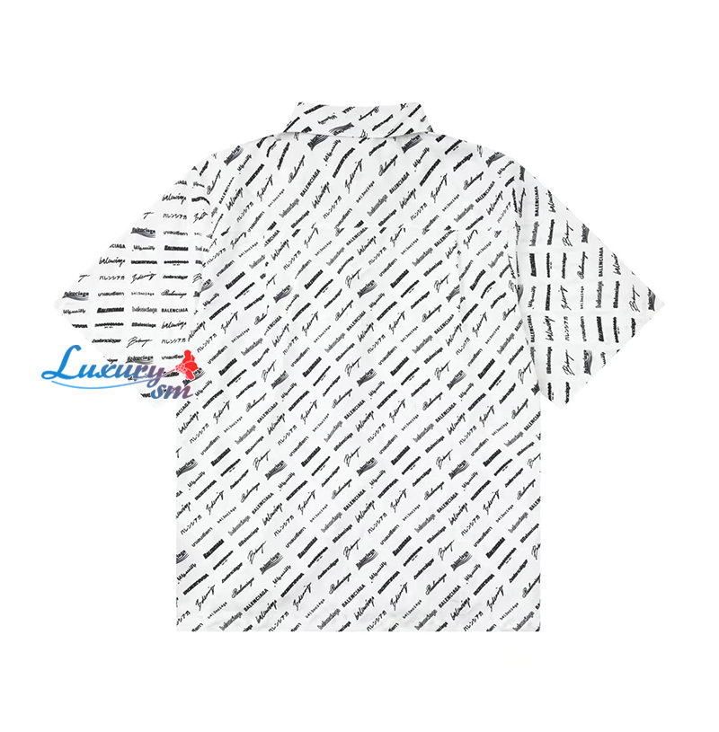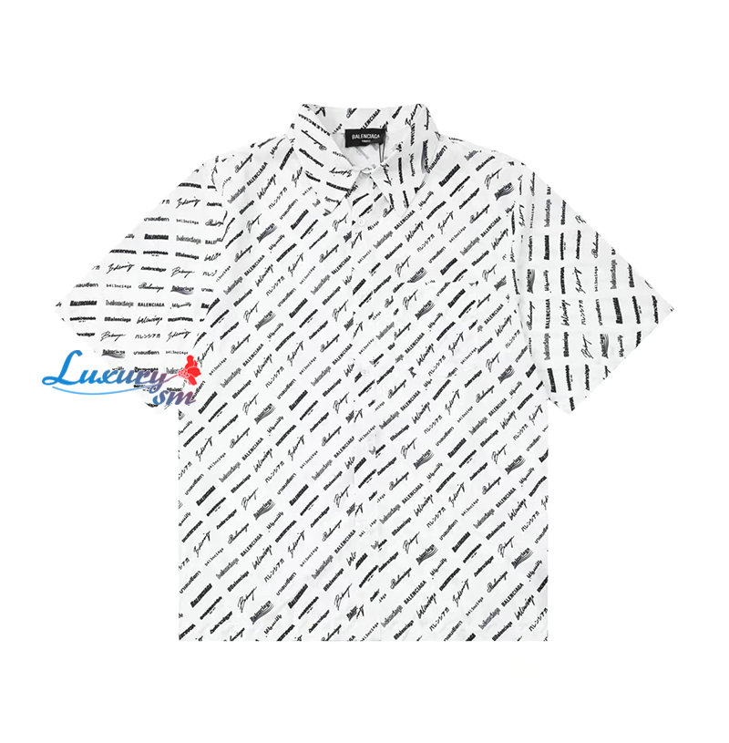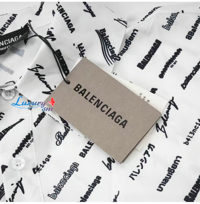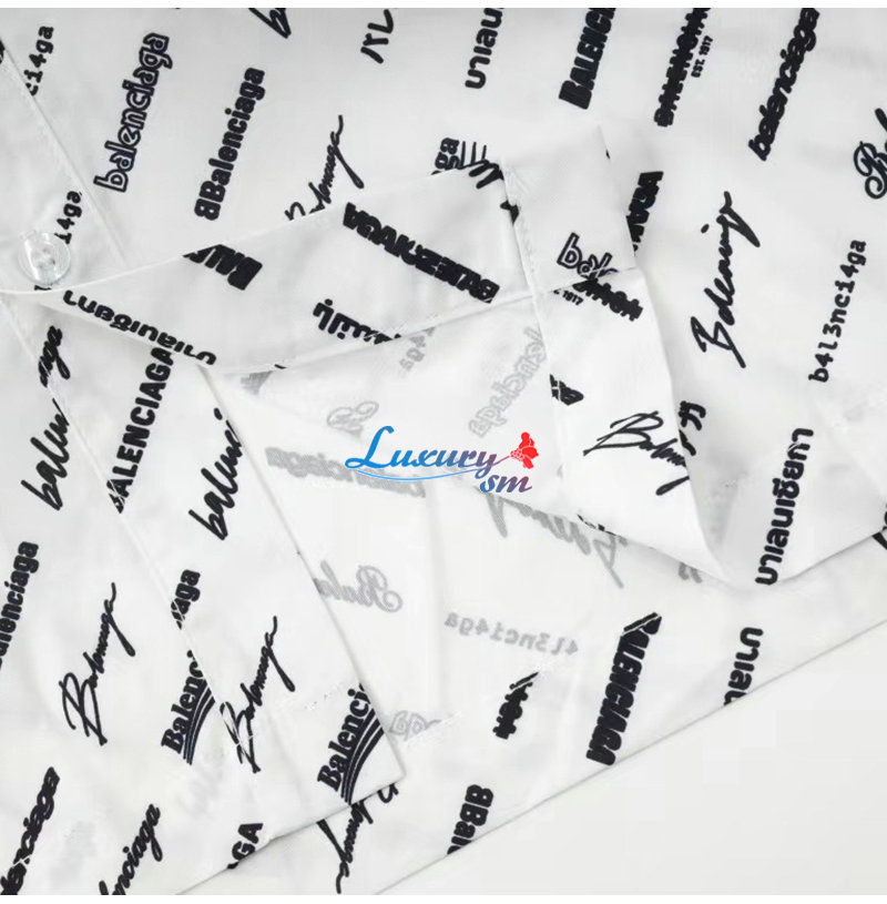BALENCIAGA-05196 발렌시아가 화이트 프린트 장식 반팔 셔츠 남성용