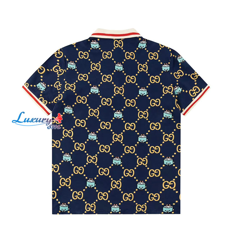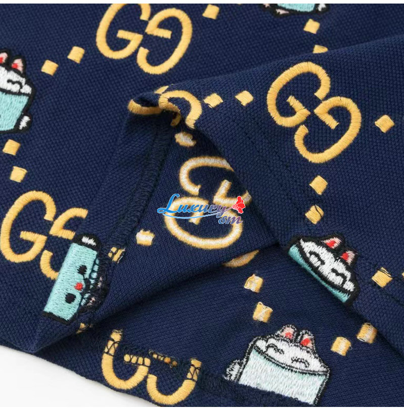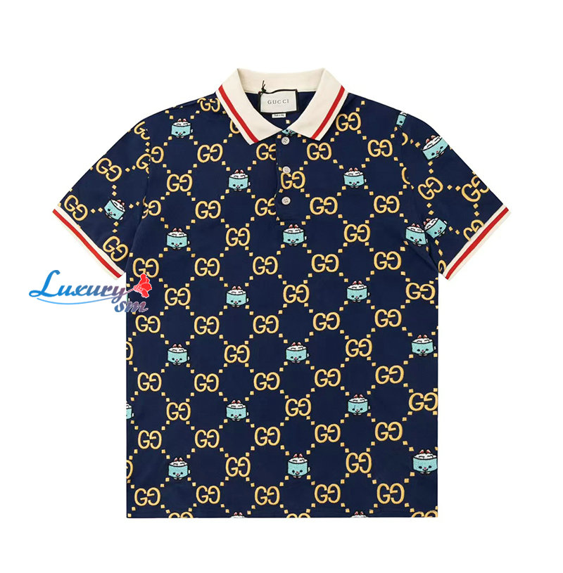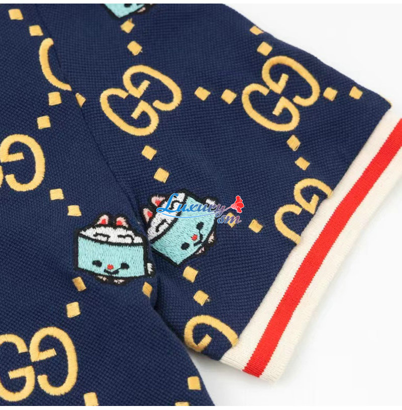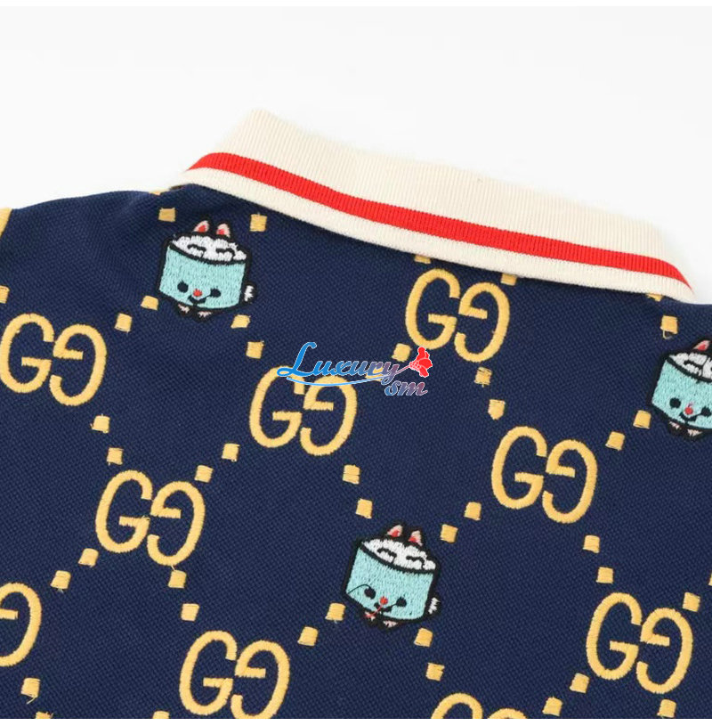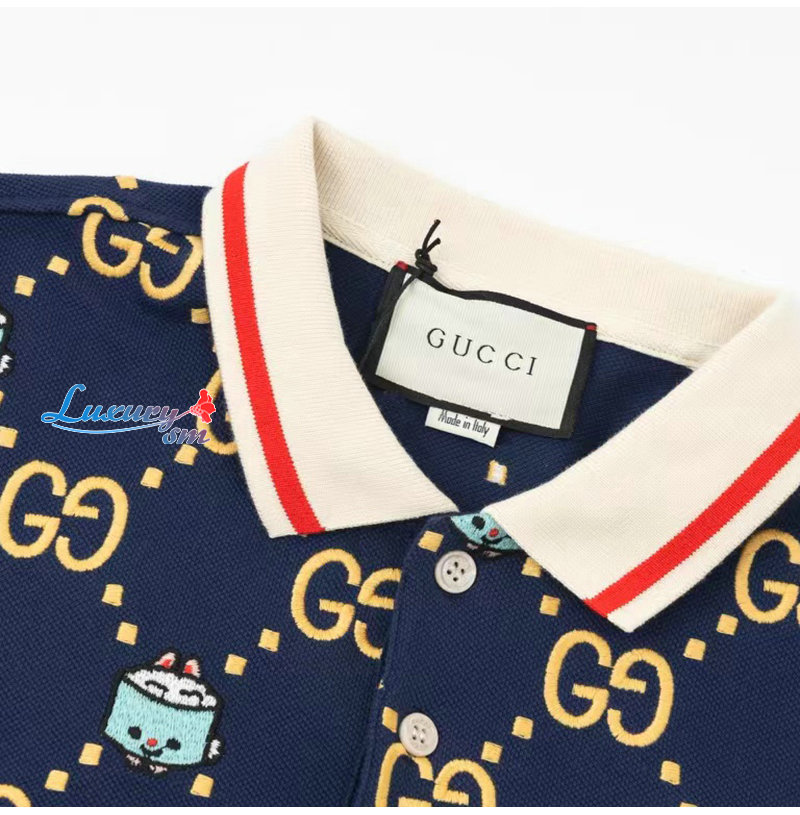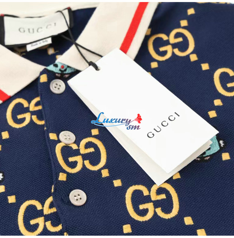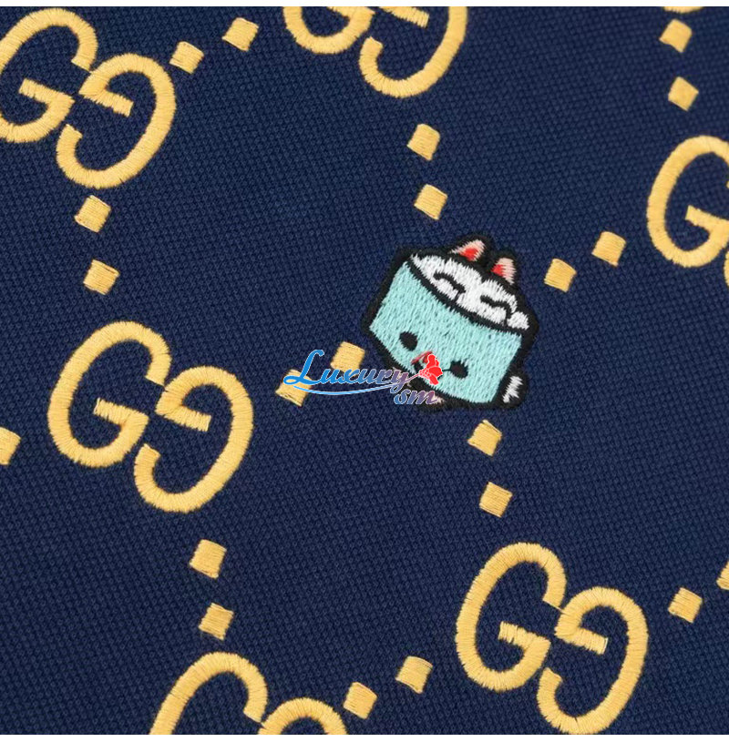 GUCCI-05223 구찌 네이비 GG 아플리케 장식 폴로 티셔츠 남성용