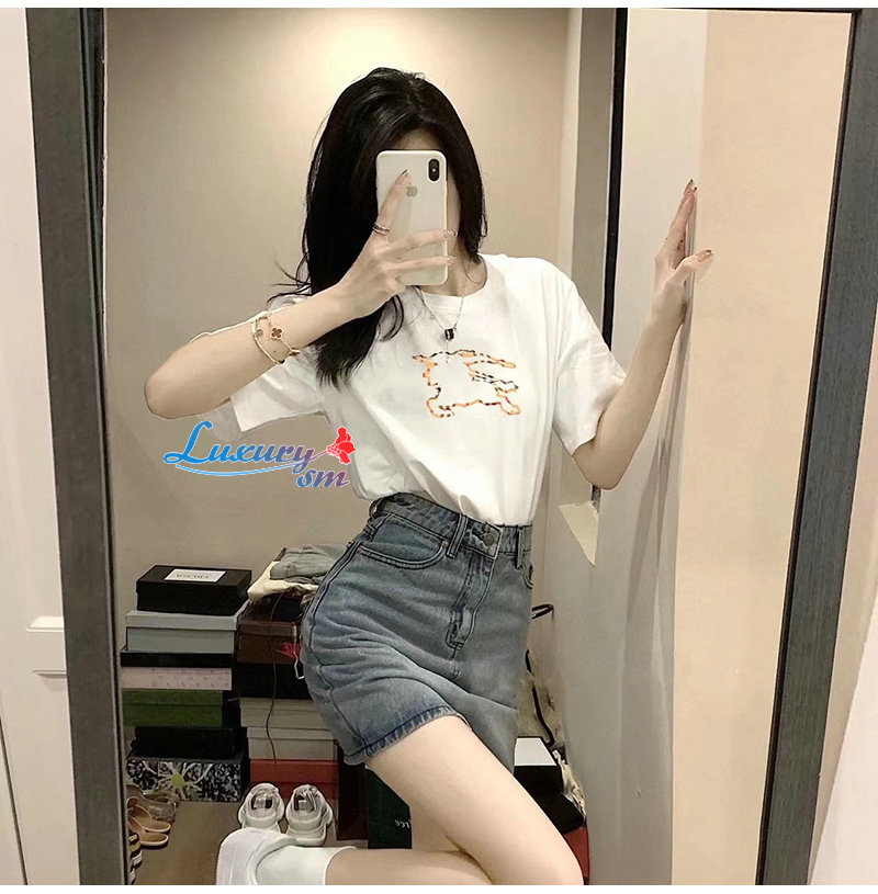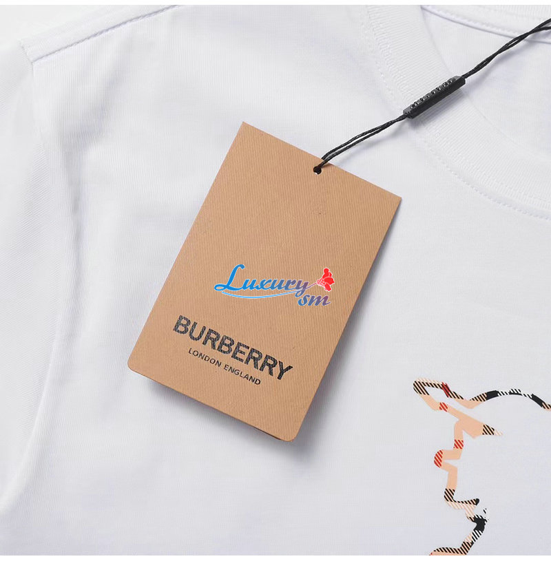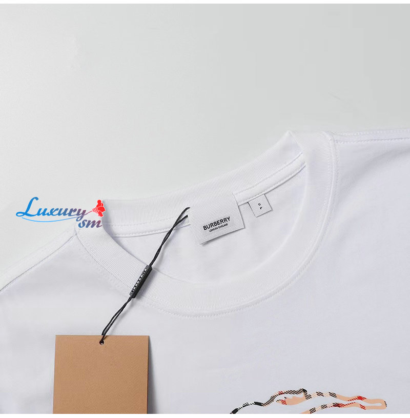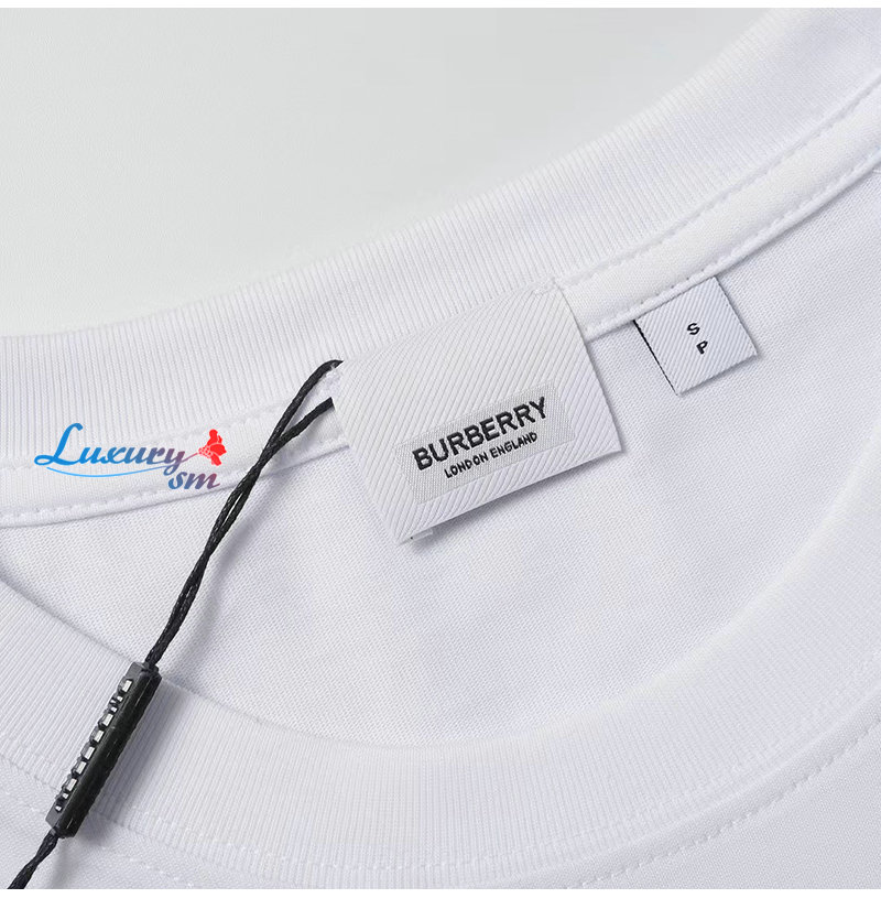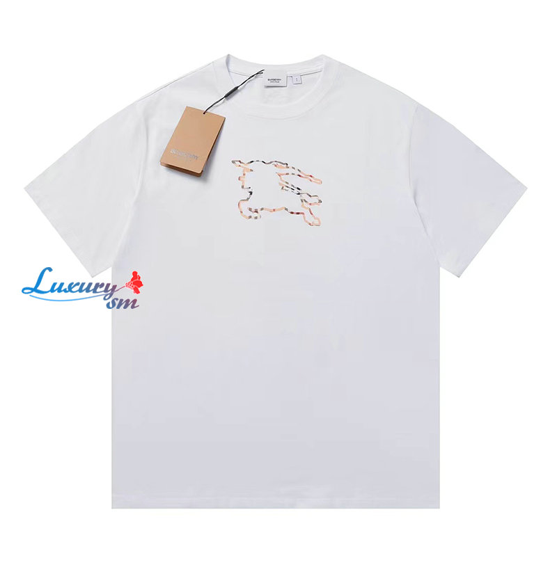 BURBERRY-05299 버버리 화이트 체크무늬 디테일 프린트 장식 티셔츠 남여공용