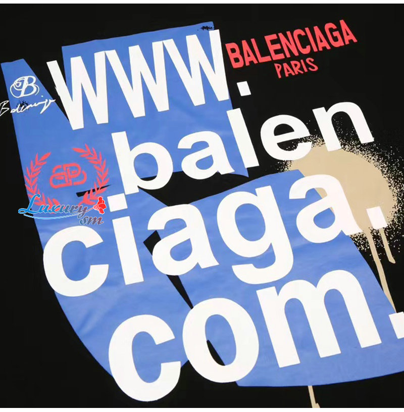 BALENCIAGA-06053 발렌시아가 블랙 프린트 장식 티셔츠 남여공용