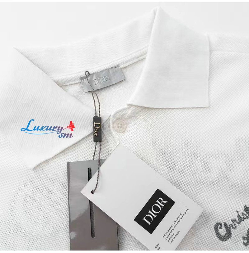 DIOR-06086 디올 화이트 아플리케 장식 폴로 티셔츠 남성용