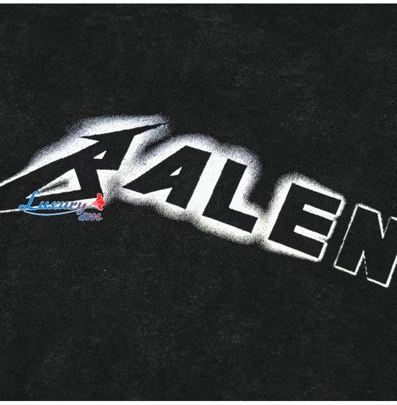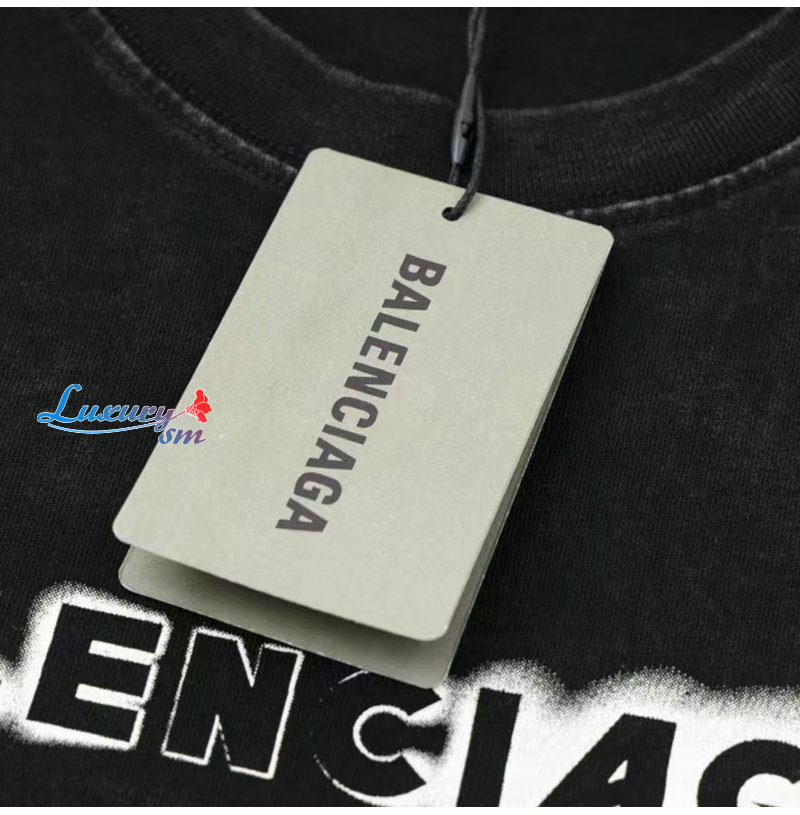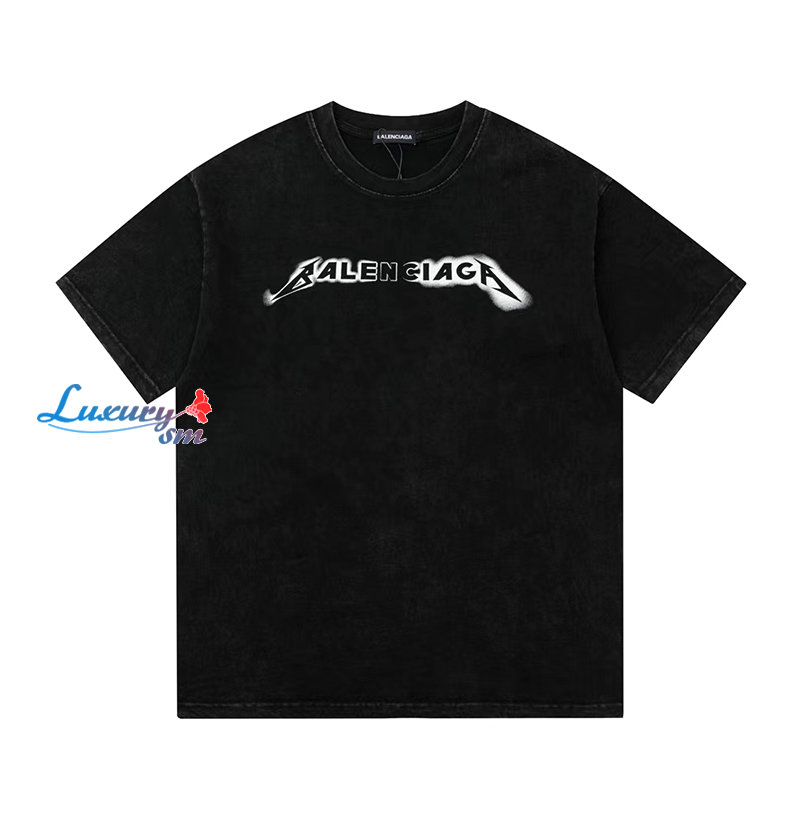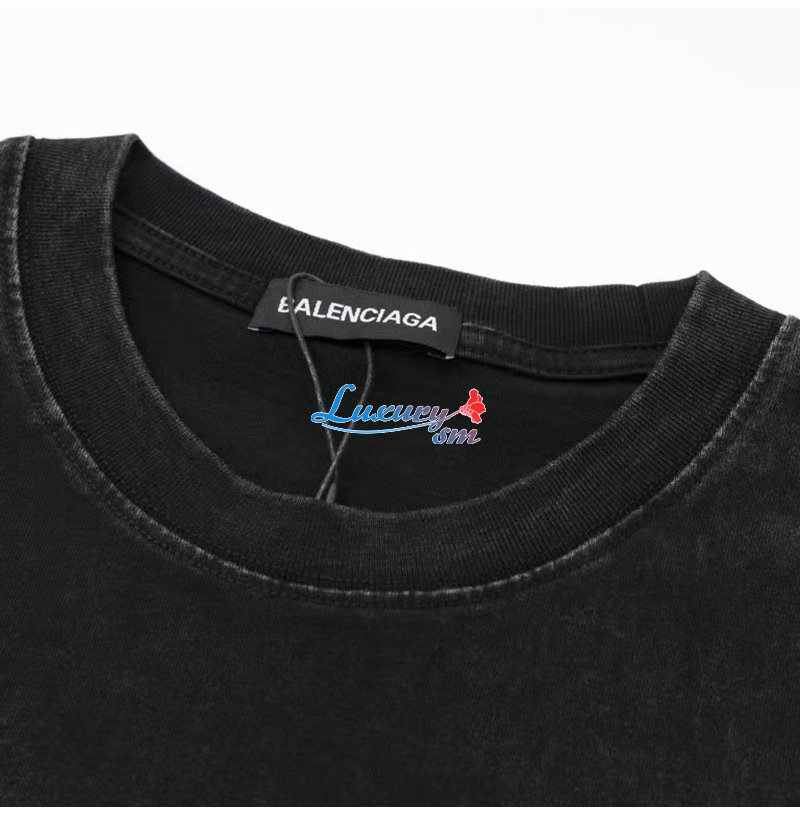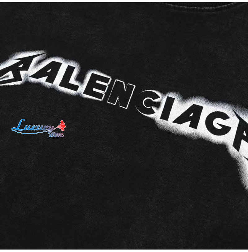 BALENCIAGA-07161 발렌시아가 블랙 프린트 장식 워싱 빈티지 티셔츠 남여공용