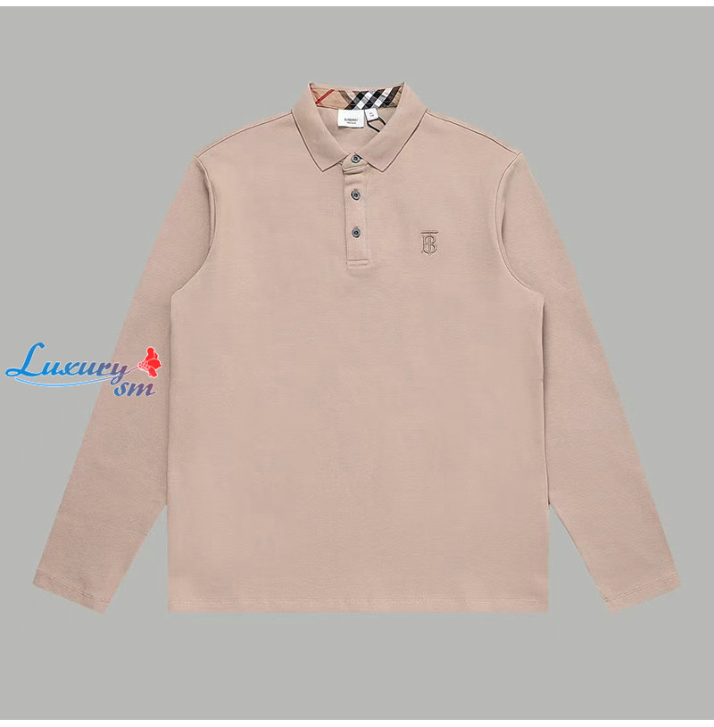 BURBERRY-07294 버버리 핑크 TB 로고 장식 긴팔 폴로 티셔츠 남성용