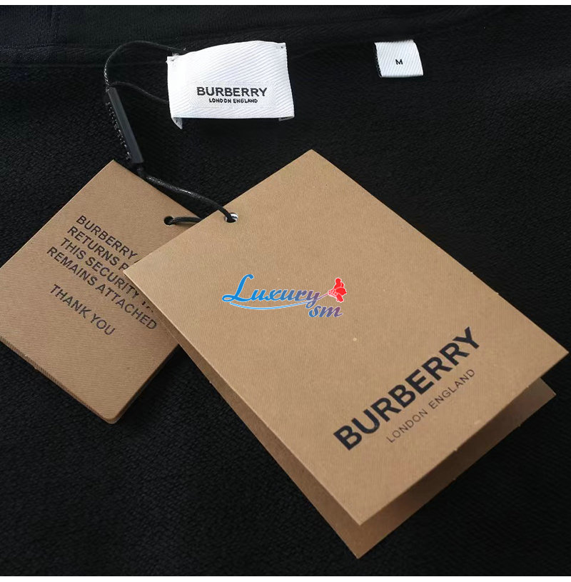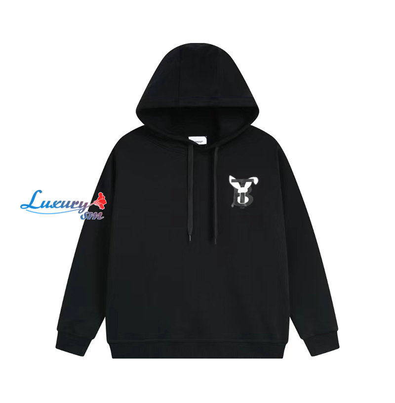 BURBERRY-07243 버버리 블랙 TB 프린트 장식 후드 티셔츠 남여공용