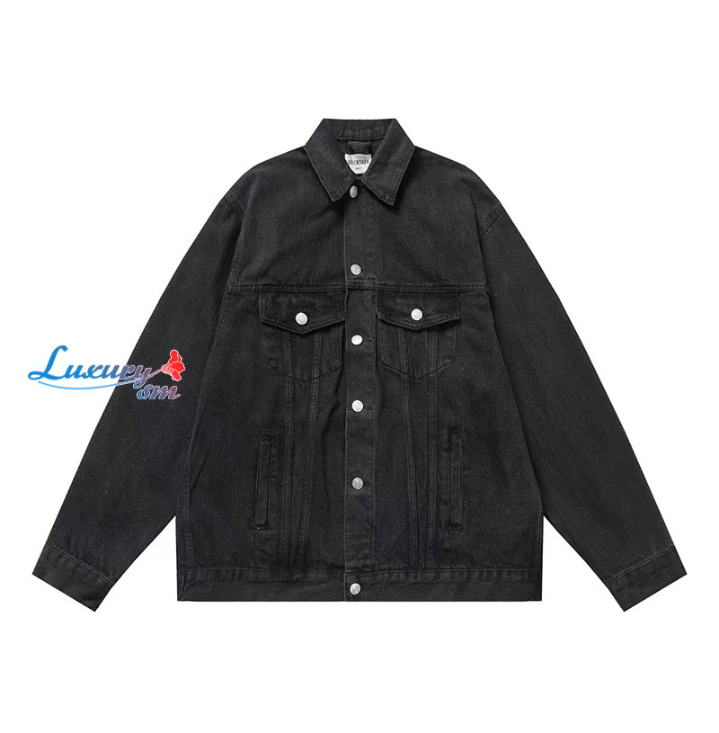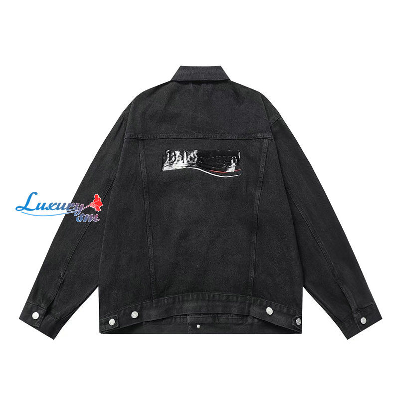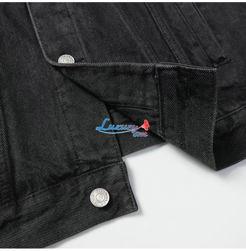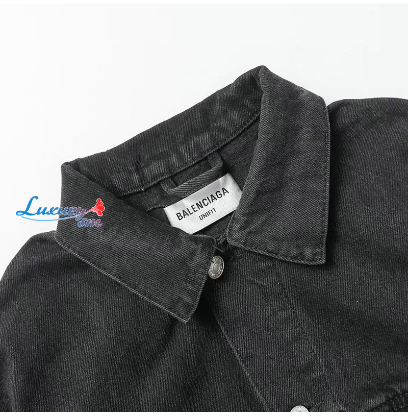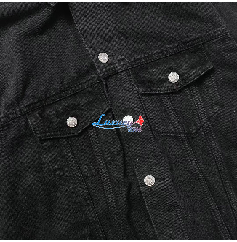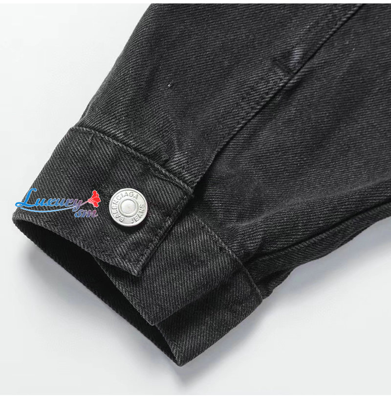 BALENCIAGA-08068 발렌시아가 블랙 아플리케 장식 데님 셔츠 남성용