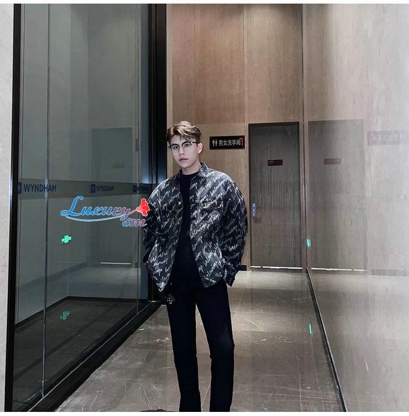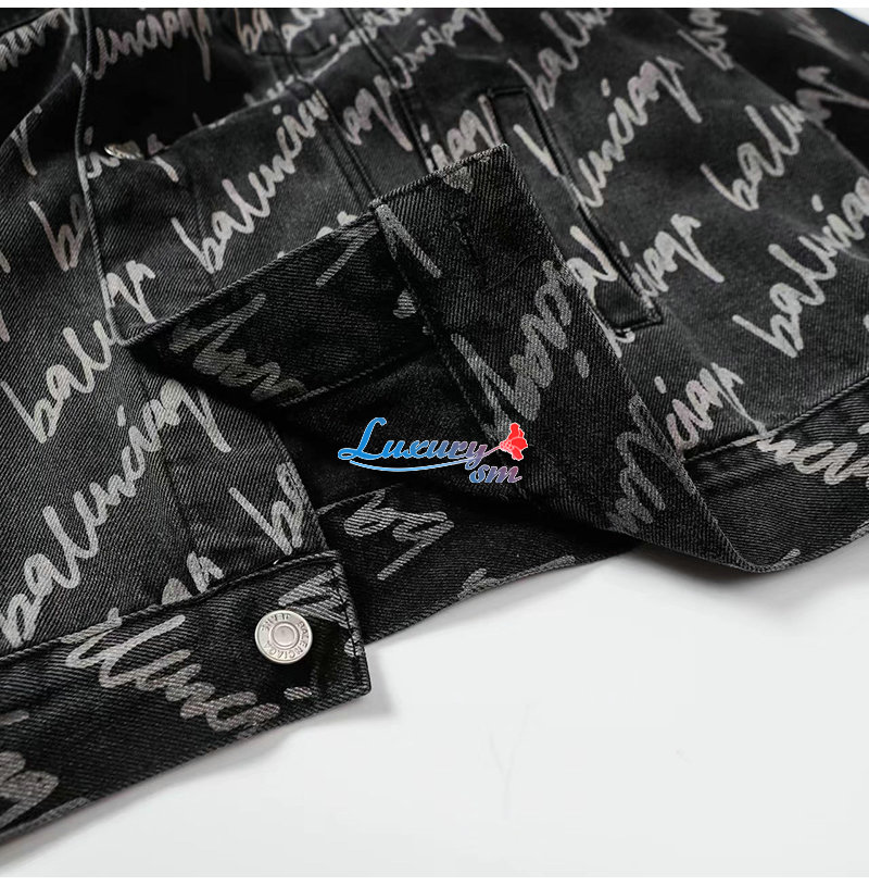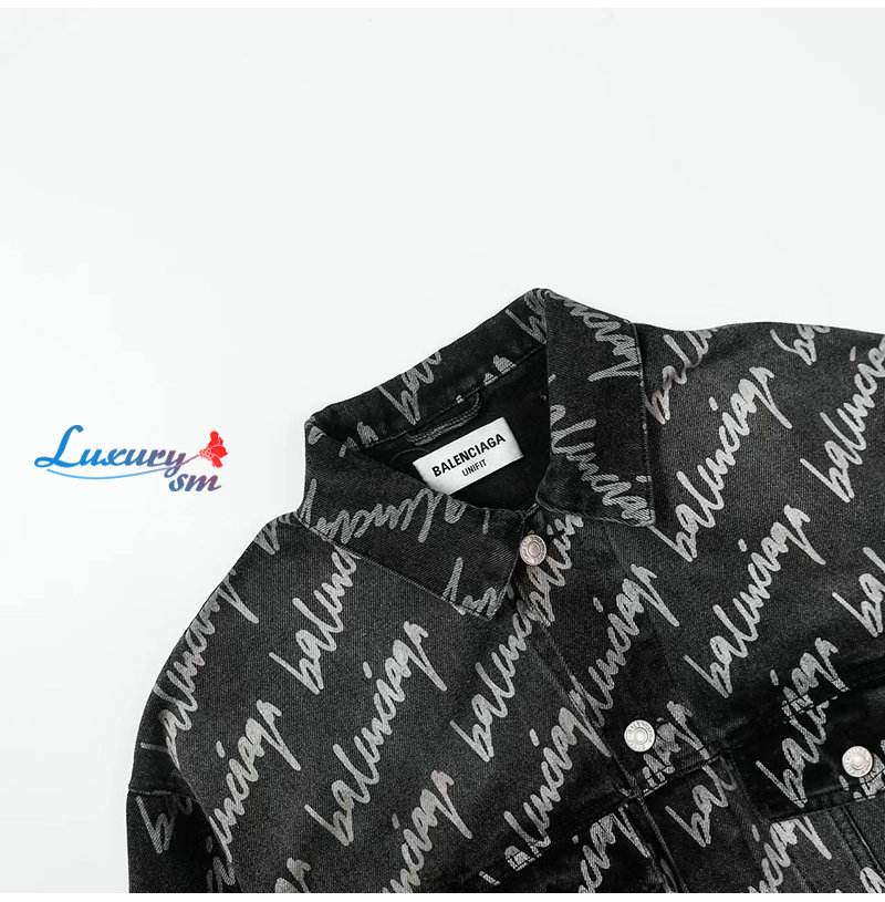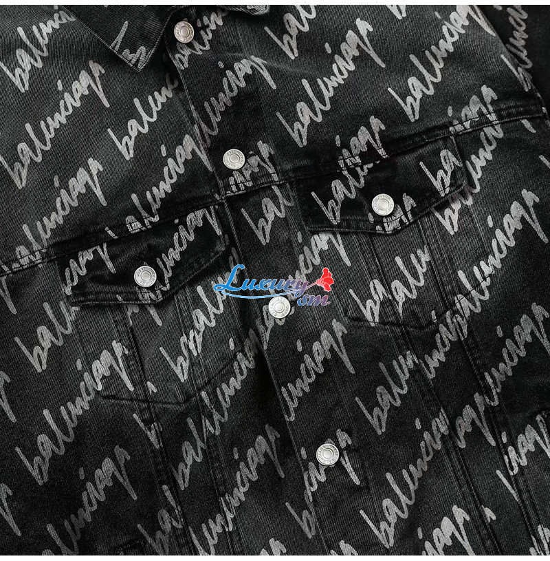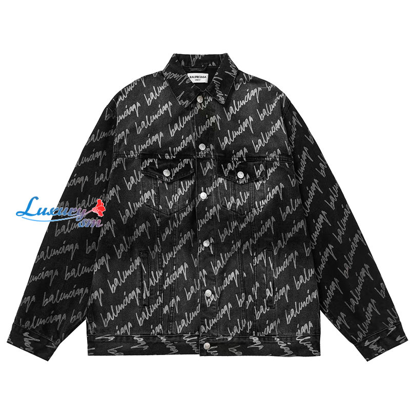 BALENCIAGA-08069 발렌시아가 블랙 프린트 장식 데님 셔츠 남여공용