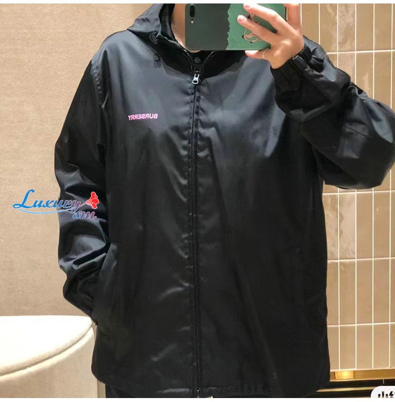 BURBERRY-08155 버버리 블랙 프린트 장식 바람막이 후드 재킷 남여공용