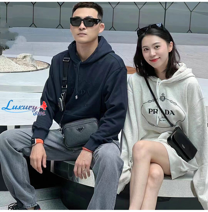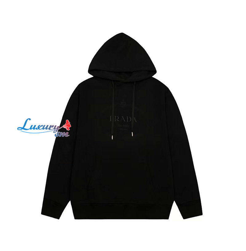 PRADA-08242 프라다 블랙 아플리케 장식 후드 티셔츠 남여공용