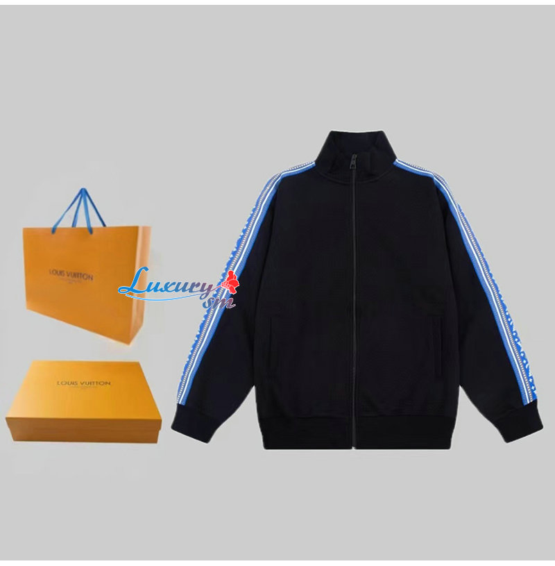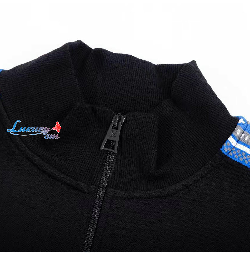 LOUIS VUITTON-08248 루이비통 블랙/블루 LV 시그니처 스트라이프 장식 스웨트재킷 남여공용