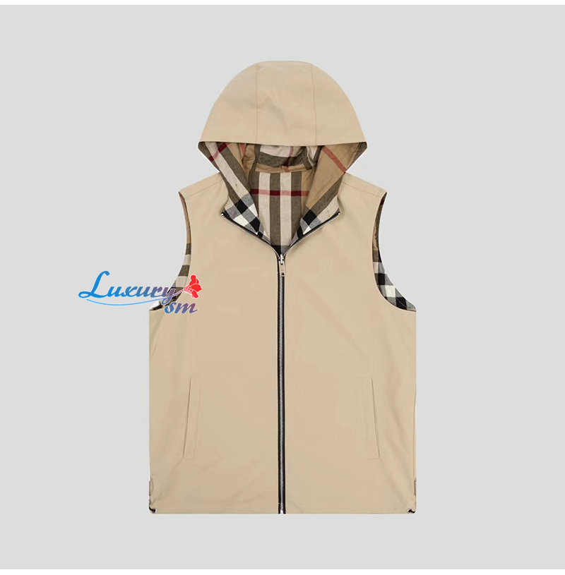 BURBERRY-08296 버버리 베이지 체크 무늬 양면 바람막이 조끼 남성용