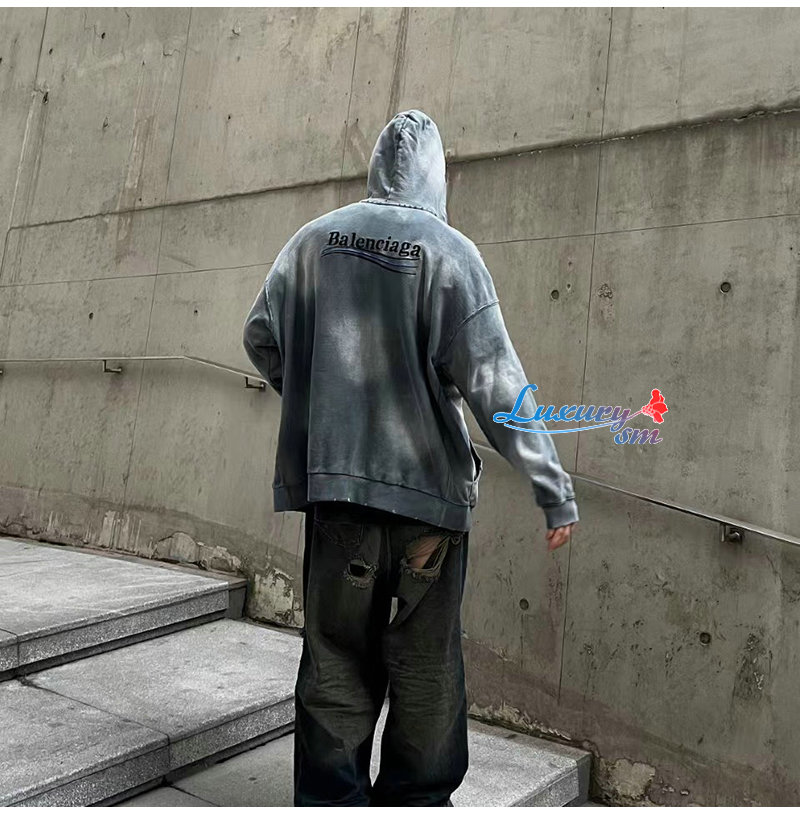 BALENCIAGA-09031 발렌시아가 블루 아플리케 장식 워싱 빈티지 후드 재킷 남여공용 가격 : 160,000원