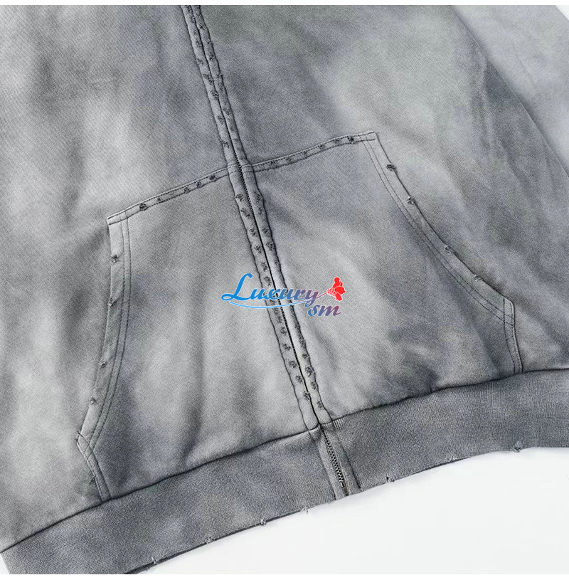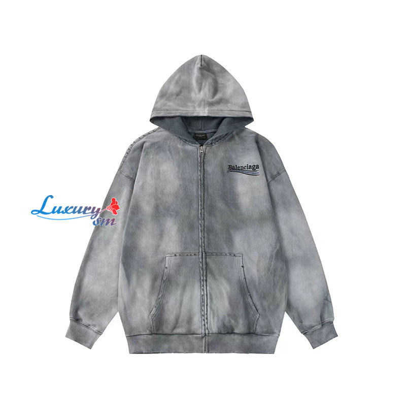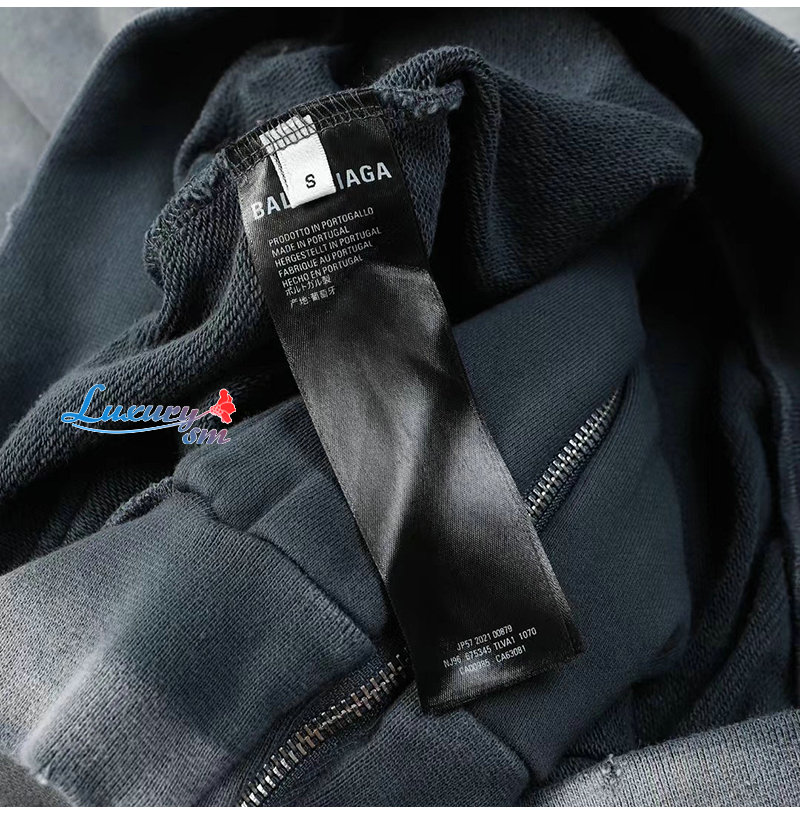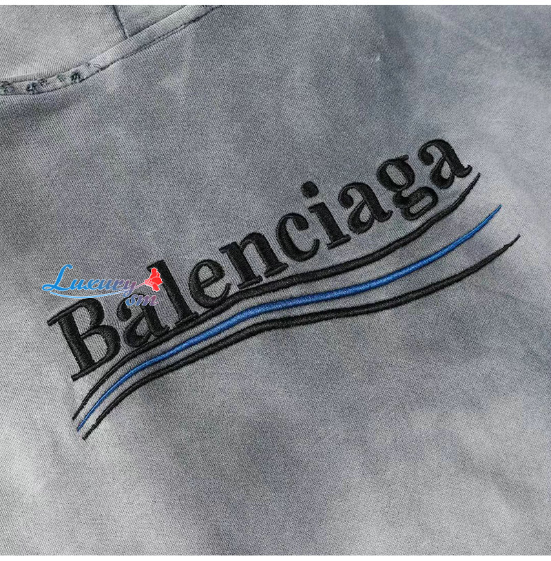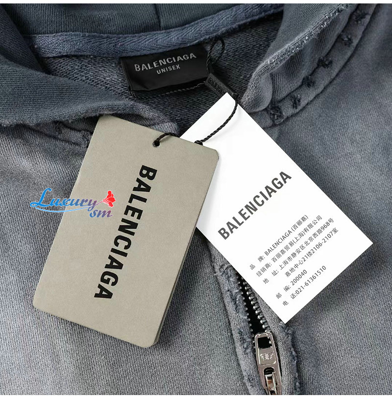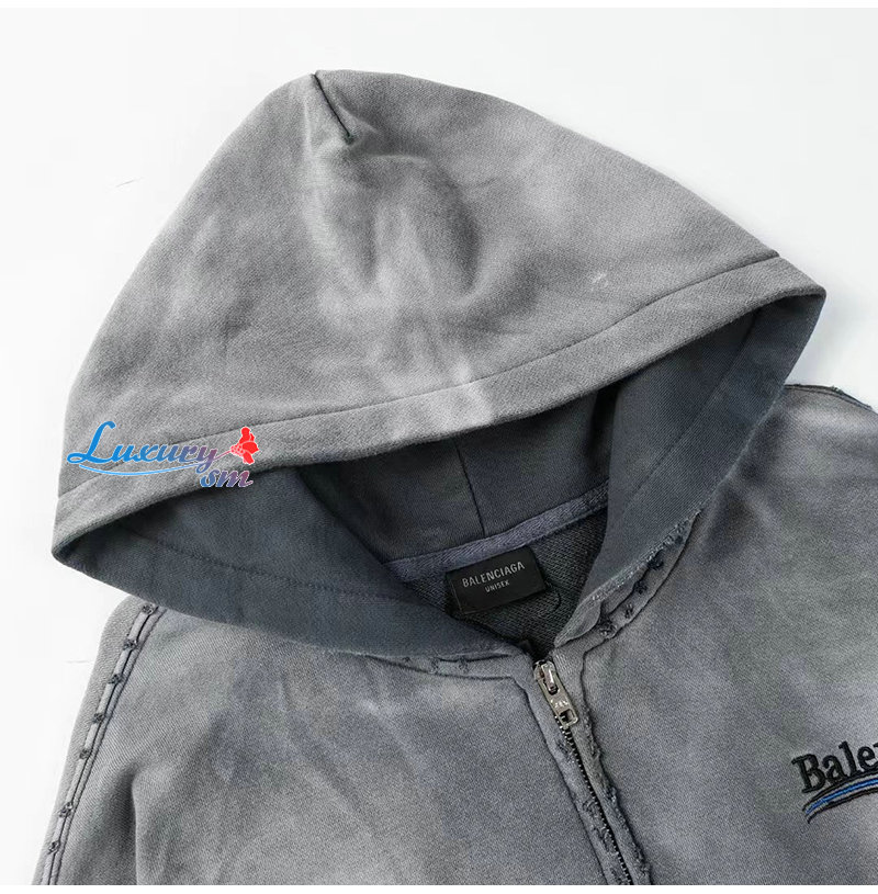 BALENCIAGA-09032 발렌시아가 그레이 아플리케 장식 워싱 빈티지 후드 재킷 남여공용