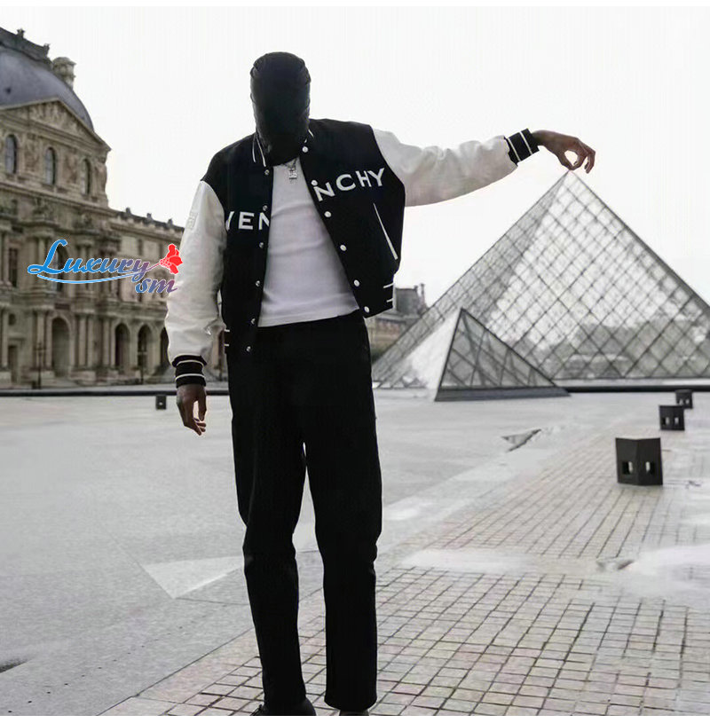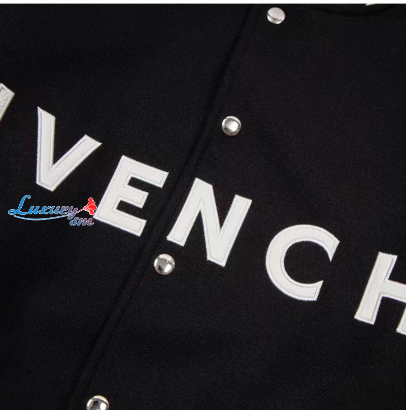 GIVENCHY-08318 지방시 블랙 울 아플리케 장식 베이스볼 재킷 남여공용