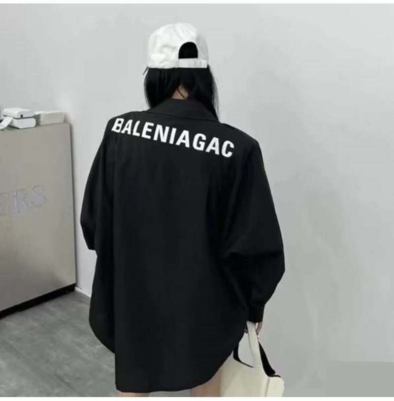 BALENCIAGA-725377 발렌시아가 블랙 로고 프린트 오버사이즈 셔츠 남녀공용
