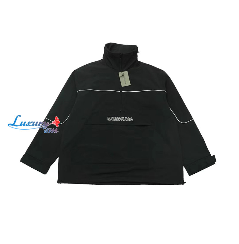 BALENCIAGA-09148 발렌시아가 블랙 아플리케 장식 하프 지퍼 바람막이 재킷 남여공용