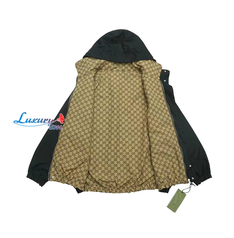 GUCCI-09162 구찌 블랙/베이지 GG 양면 바람막이 후드 재킷 남성용