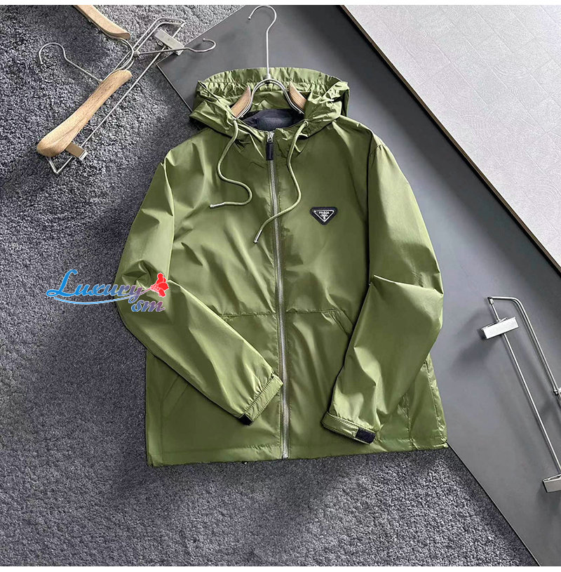 PRADA-091412 프라다 그린 트라이앵글 로고 바람막이 후드 재킷 남성용