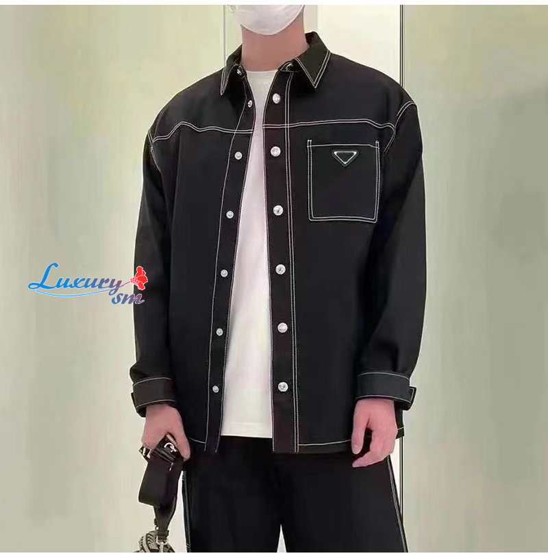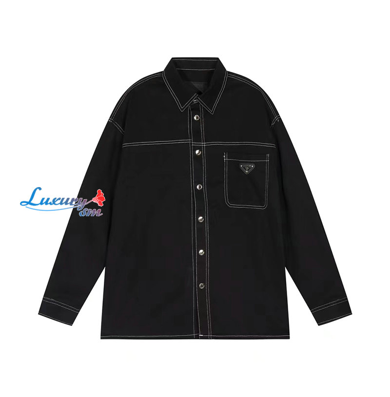 PRADA-09235 프라다 블랙 트라이앵글 로고 셔츠 남성용