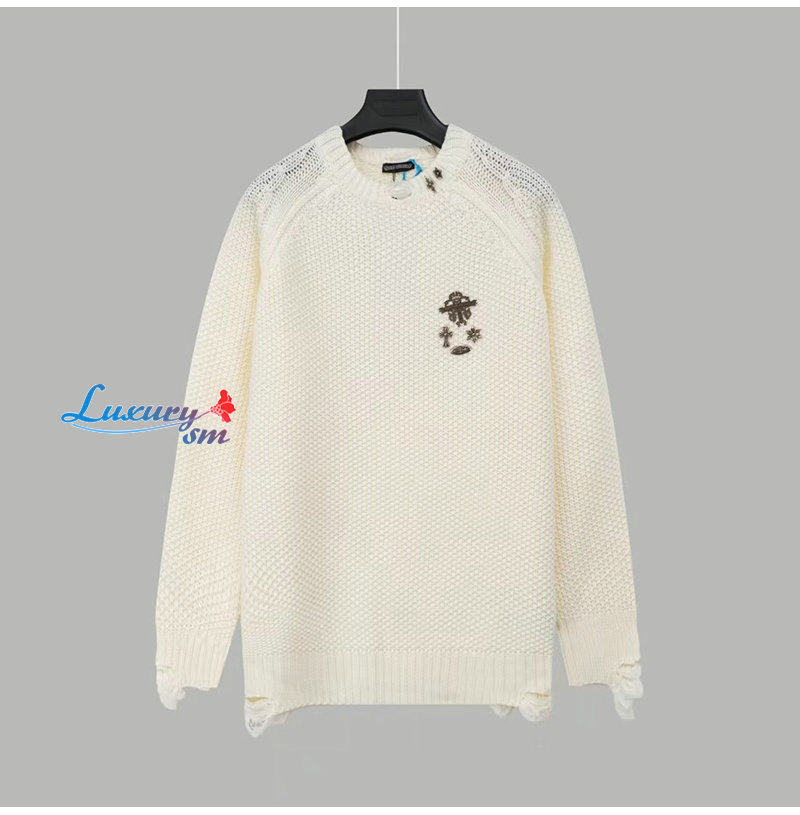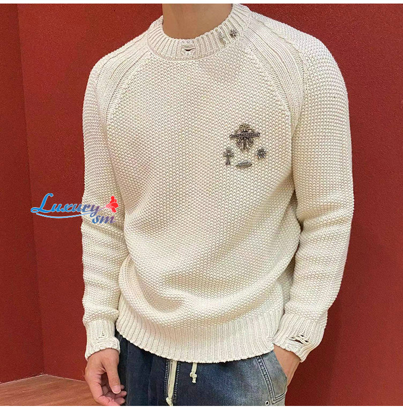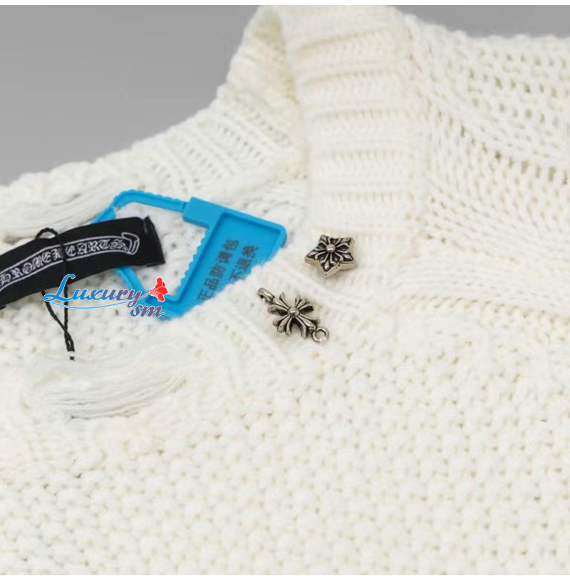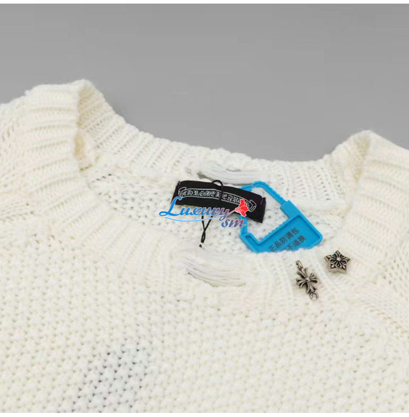 CHROMEHEARTS-10186 크롬하츠 화이트 메탈 트리밍 스웨터 남여공용