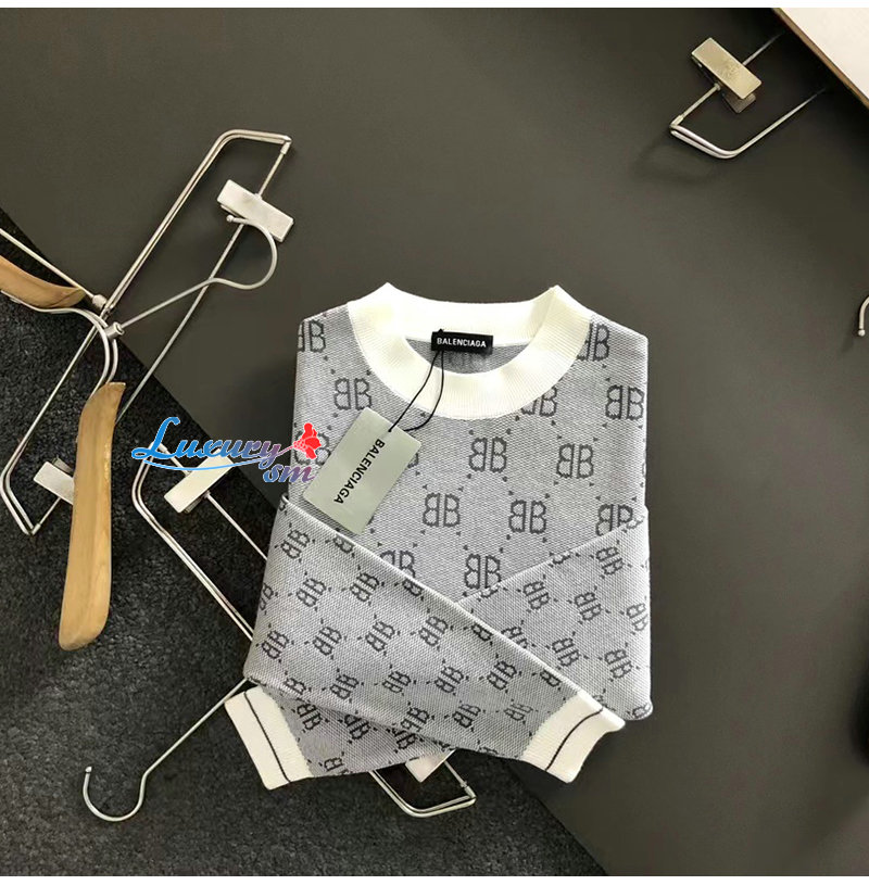 BALENCIAGA-10251 발렌시아가 그레이 BB 로고 스웨터 남성용