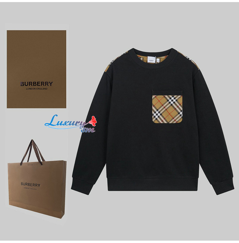 BURBERRY-12276 버버리 블랙 체크 무늬 장식 스웨트셔츠 남여공용