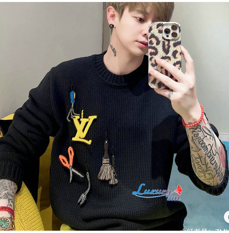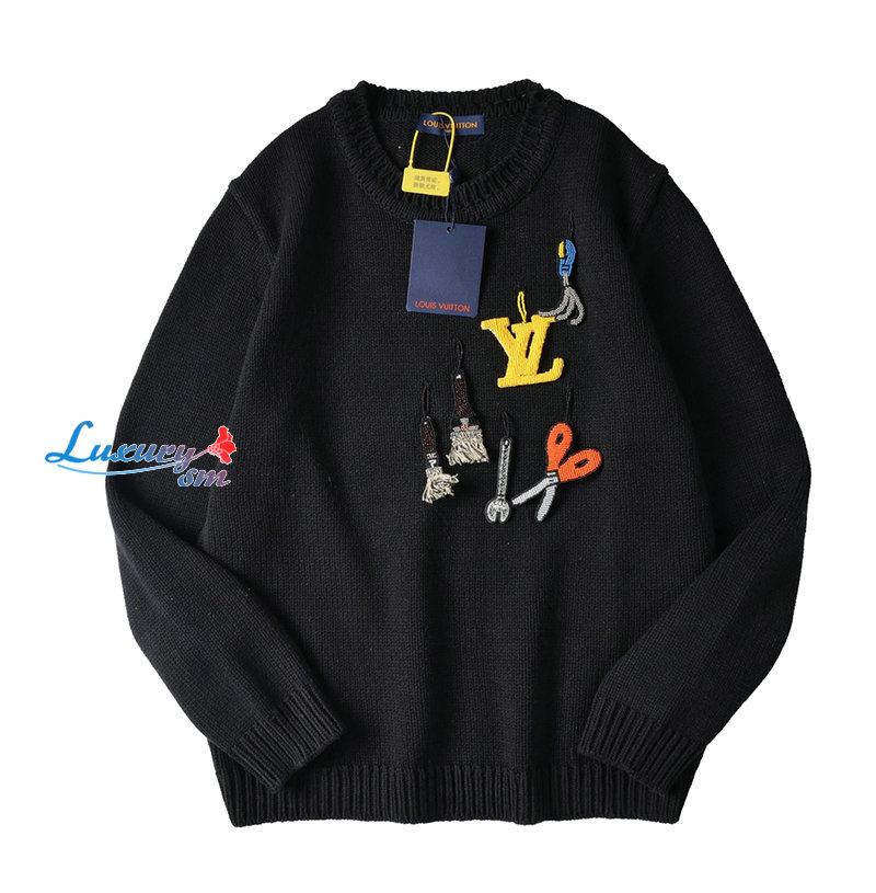 LOUIS VUITTON-01079 루이비통 블랙 아플리케 장식 스웨터 남여공용