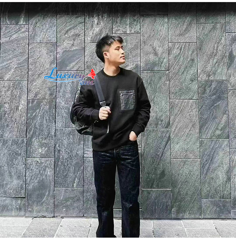 FENDI-03106 펜디 블랙 FF 포켓 장식 스웨트셔츠 남성용