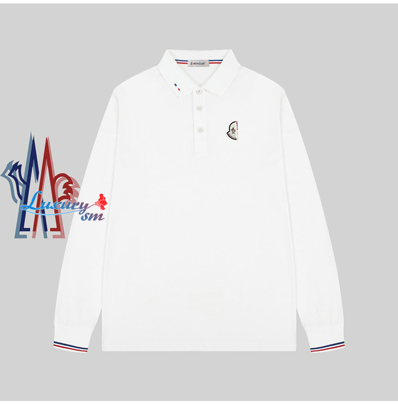 MONCLER-03125 몽클레어 화이트 코튼 긴팔 폴로 티셔츠 남성용