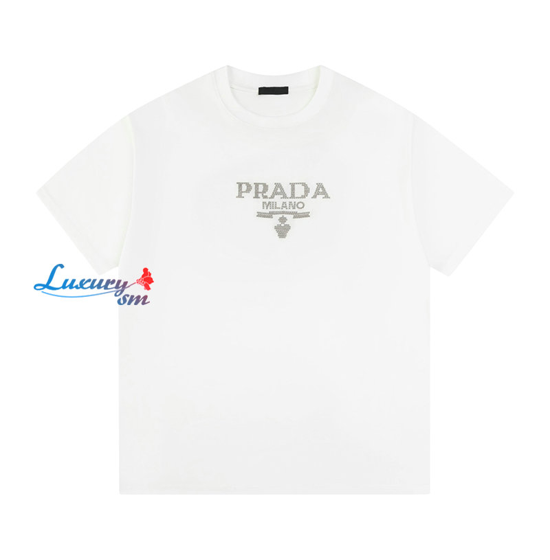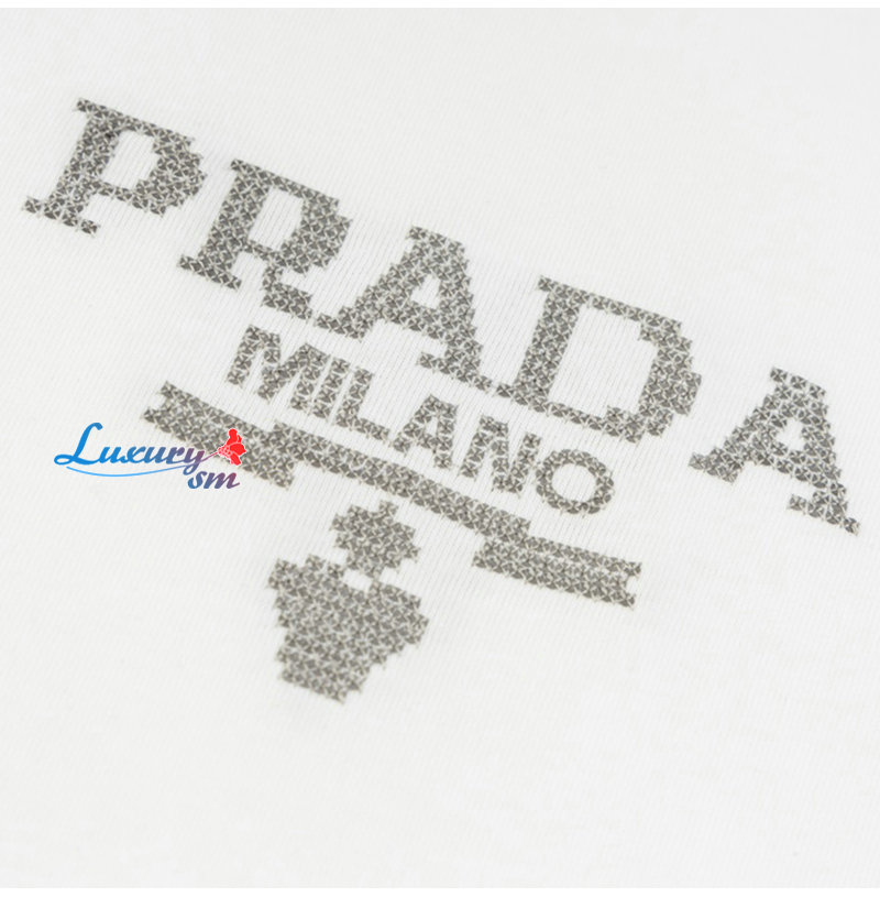 PRADA-03091 프라다 화이트 스터드 장식 티셔츠