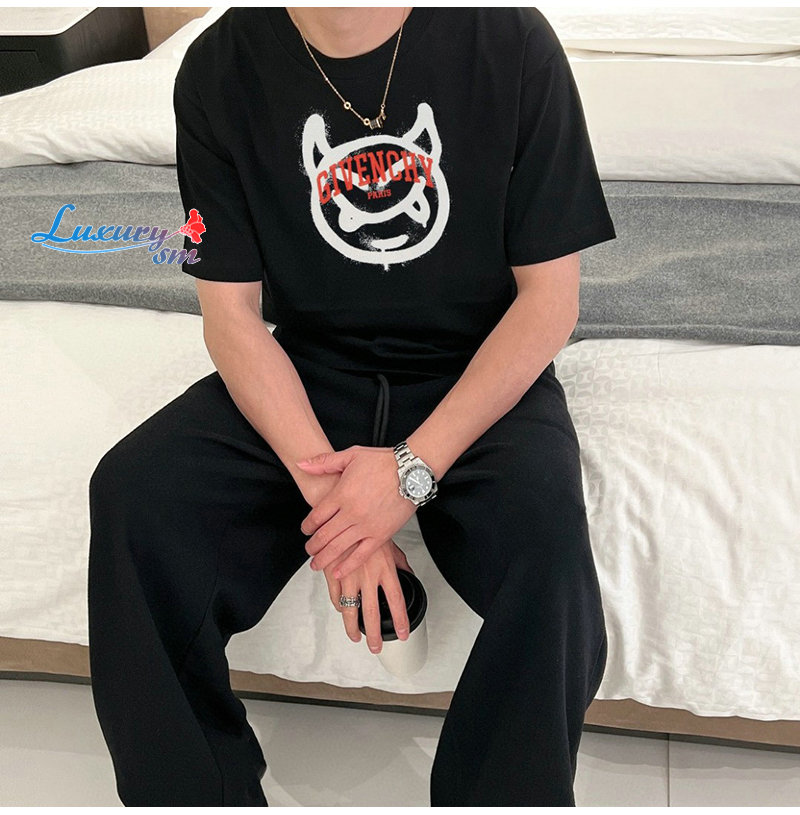 GIVENCHY-030916 지방시 블랙 프린트 장식 티셔츠 남성용