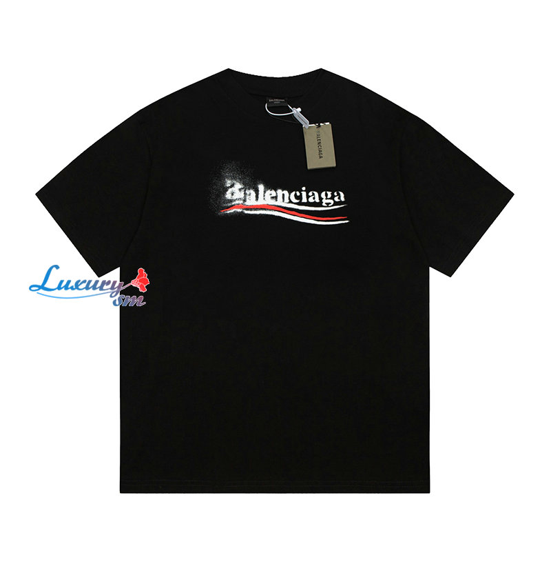 BALENCIAGA-03138 발렌시아가 블랙 프린트 장식 티셔츠 남여공용