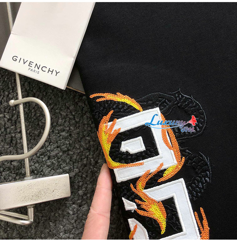 GIVENCHY-03141 지방시 블랙 아플리케 장식 티셔츠 남여공용